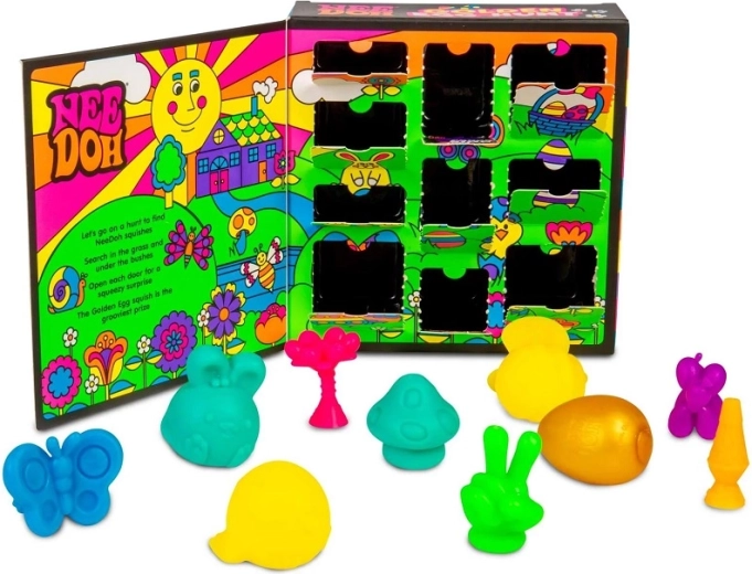 Unesite čaroliju uskrsne potrage u svoj dom. Kutijica na otvaranje s tajnim vratima skriva 10 stiskavih iznenađenja Teenie NeeDoh – zečiće, pčelice, cvjetove i druge proljetne oblike. Ne nedostaje ni posebno zlatno jaje, najrjeđi dragulj cijelog seta. Svaka figurica je mekana, rastezljiva i ugodna na dodir – savršena za stiskanje i razvlačenje kao antistres pomagala.