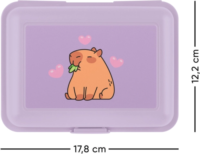Praktična i izdržljiva kutija za užinu u elegantnoj ljubičastoj boji s motivom kapibare. Zahvaljujući jednostavnom zatvaranju na jednu kopču i unutarnjoj pregradi hrana ostaje pregledno odvojena i svježa. Odličan izbor za školu, izlete i svakodnevno nošenje.