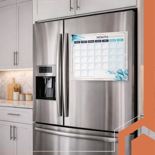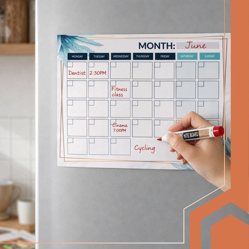 Suho brisiva površina omogućuje višekratno pisanje i brisanje bez nereda. Stražnja strana s jakim magnetom osigurava stabilno pričvršćenje na hladnjak ili drugu metalnu površinu. Praktična sekcija za bilješke drži važne informacije uvijek pri ruci, a markeri u boji istaknut će prioritete.