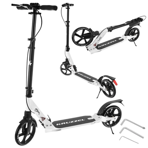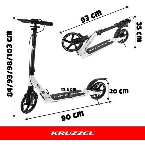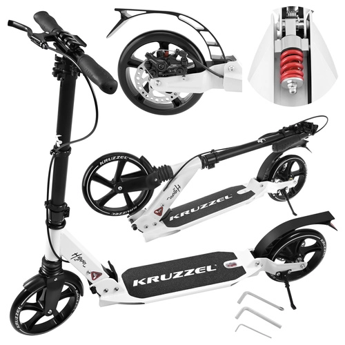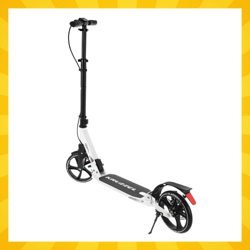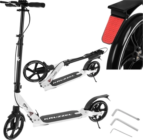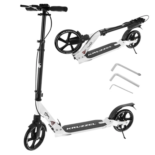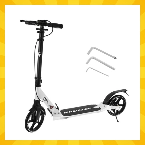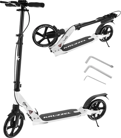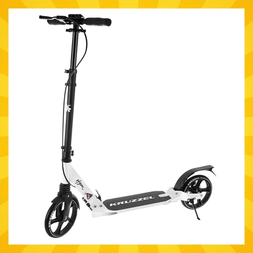 Premium sklopivi romobil KRUZZEL Hyperion za djecu i odrasle nudi velike gumene kotače od 200 mm, ležajeve ABEC-9, dvosustavno kočenje (ručno i nožno) te lagani aluminijski okvir. Zahvaljujući brzom sklapanju, ovjesu i podesivoj visini upravljača idealan je za udobno i sigurno kretanje po nogostupima i biciklističkim stazama.