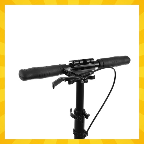 Za sigurno zaustavljanje brine se ručna disk kočnica dopunjena nožnom kočnicom u stražnjem blatobranu. 4-stupanjska regulacija visine upravljača osigurava udoban stav i djeci i odraslima. Aluminijska konstrukcija je lagana i izdržljiva, brzo sklapanje i praktično postolje olakšavaju parkiranje i prijevoz u javnom prijevozu.