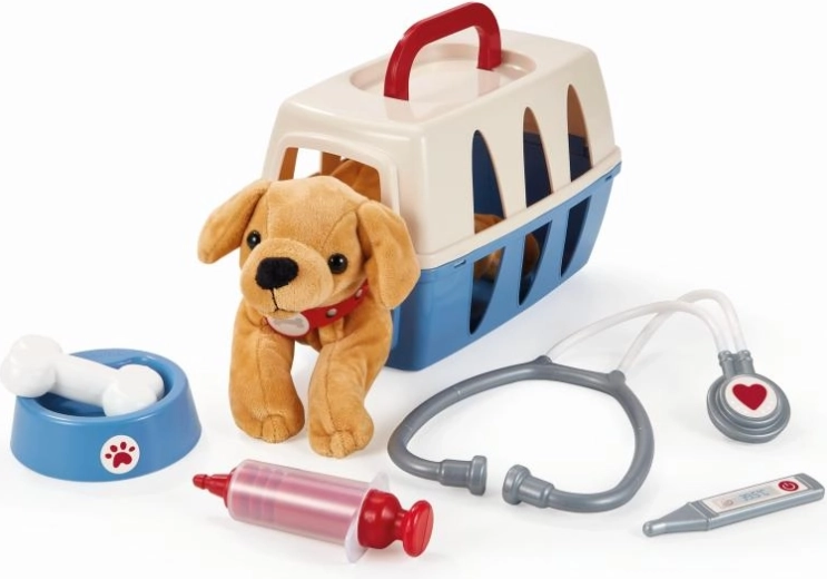 Zabavan set za male ljubitelje životinja: kofer s psićem i bogatom opremom za igru veterinara. Kofer služi kao transportna kutija i prostor za pohranu opreme. Ne nedostaju stetoskop, toplomjer, štrcaljka, zdjelica i kost – sve što je potrebno za brigu o ljubimcu.