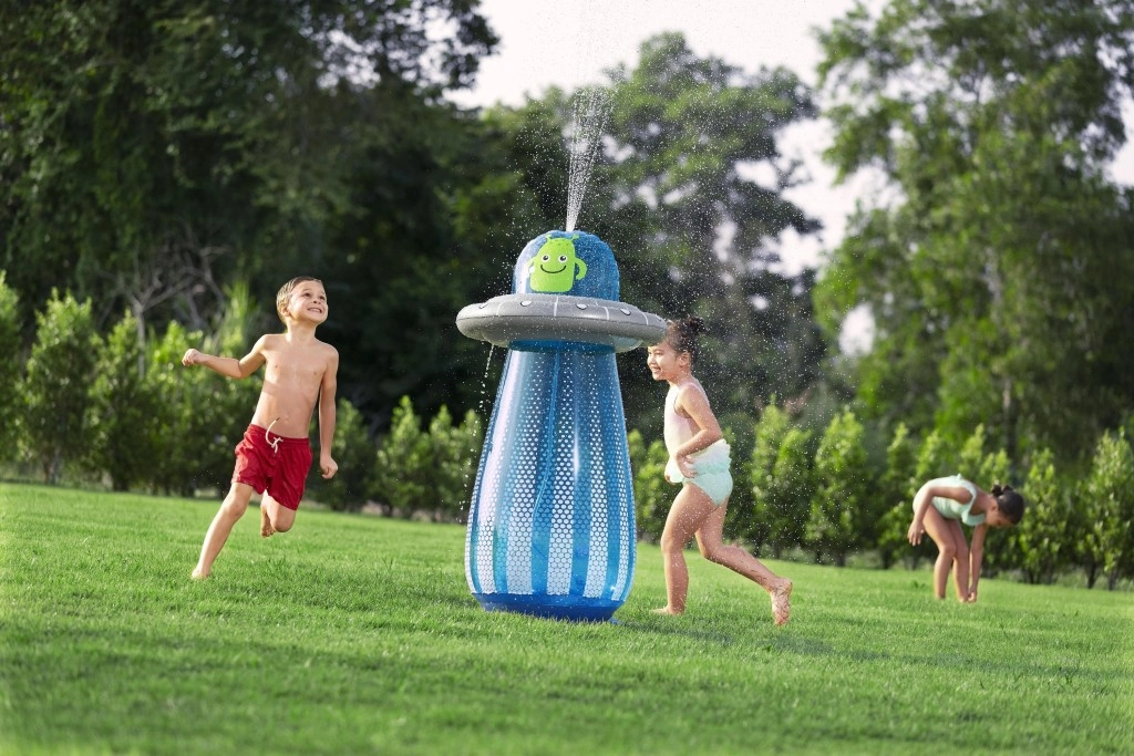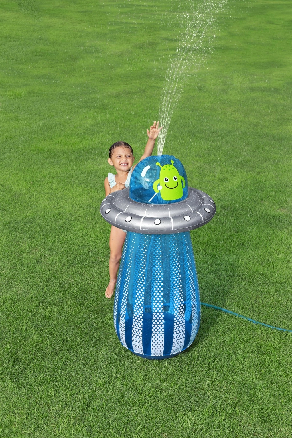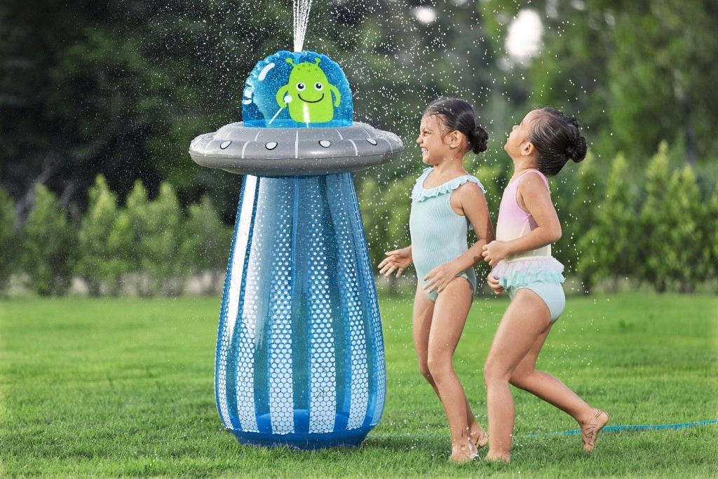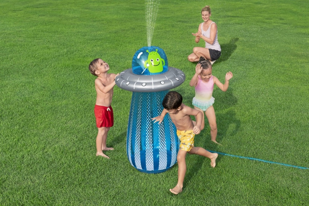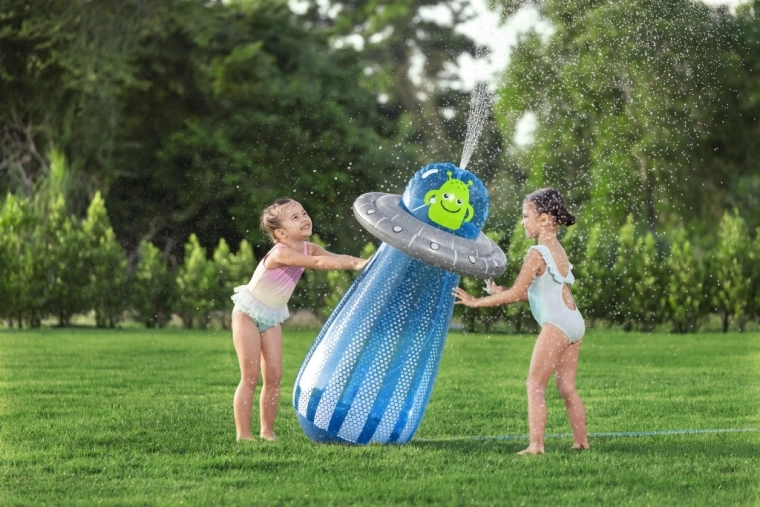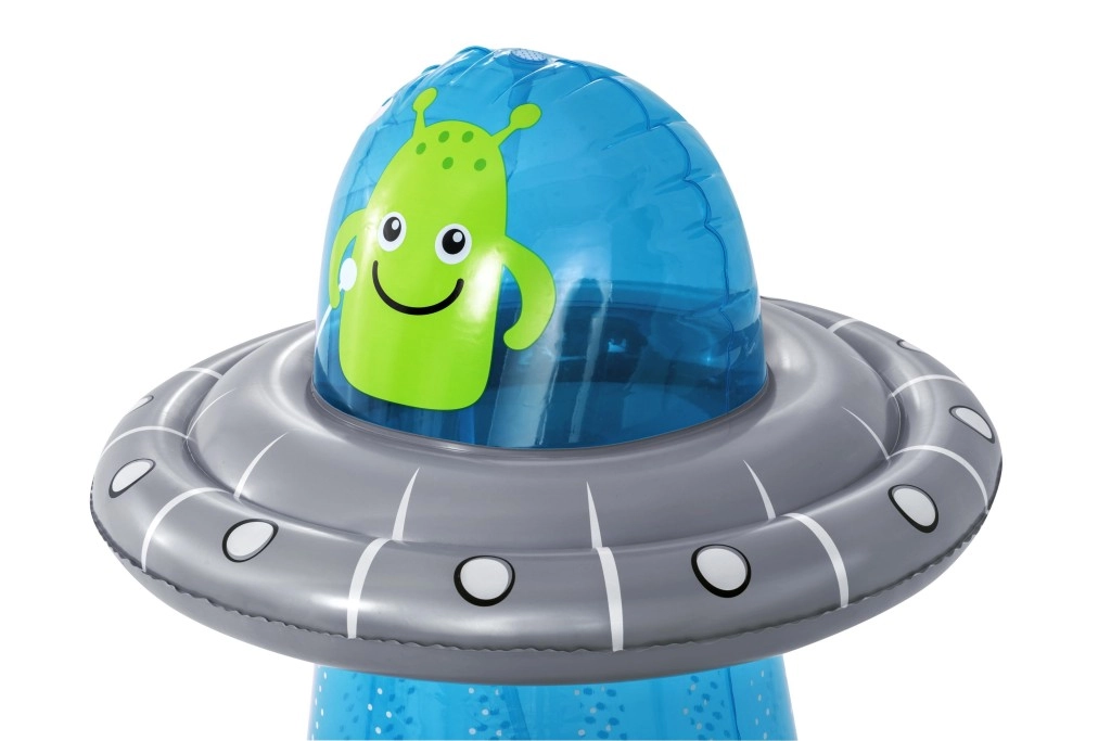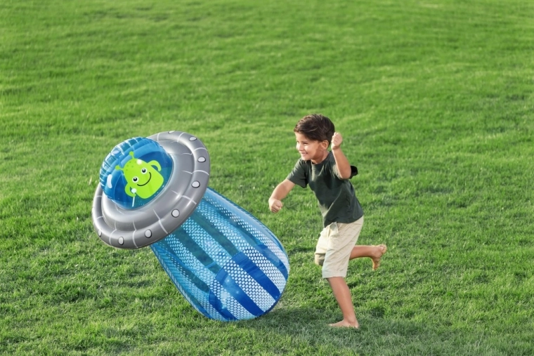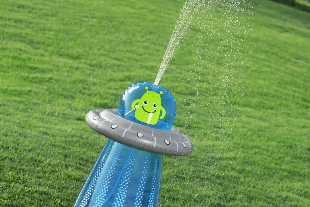 Napuhavajući NLO s prijateljskim izvanzemaljcem donosi djeci aktivno kretanje i vodeno osvježenje u jednom. Nakon spajanja crijeva iz gornjeg dijela pokreće se vodena fontana koja pretvara vrt u razigrano ljetno igralište. Zahvaljujući ugrađenoj vodenoj komori u donjem dijelu igračka je stabilna i elastično se vraća nakon udaraca.