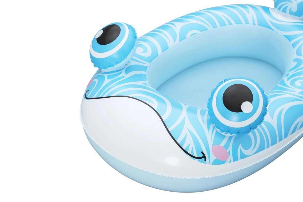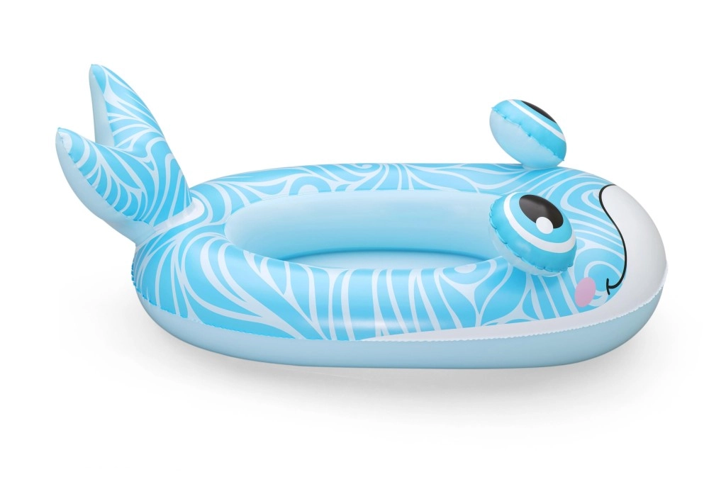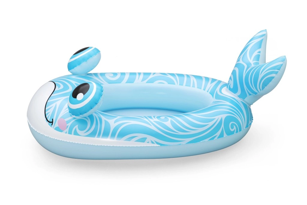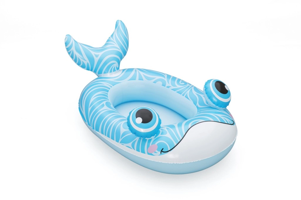 Nafukavajući dječji čamci u motivima kita, zmaja i podmornice spajaju sladak dizajn s praktičnom funkcionalnošću. Zahvaljujući pažljivo odabranim dimenzijama (kit 105×65 cm, zmaj 111×65 cm, podmornica 108×65 cm) nude dovoljno prostora za udobno sjedenje i siguran osjećaj stabilnosti na vodi. Izdržljiv PVC podnosi svakodnevnu igru i lako se održava.