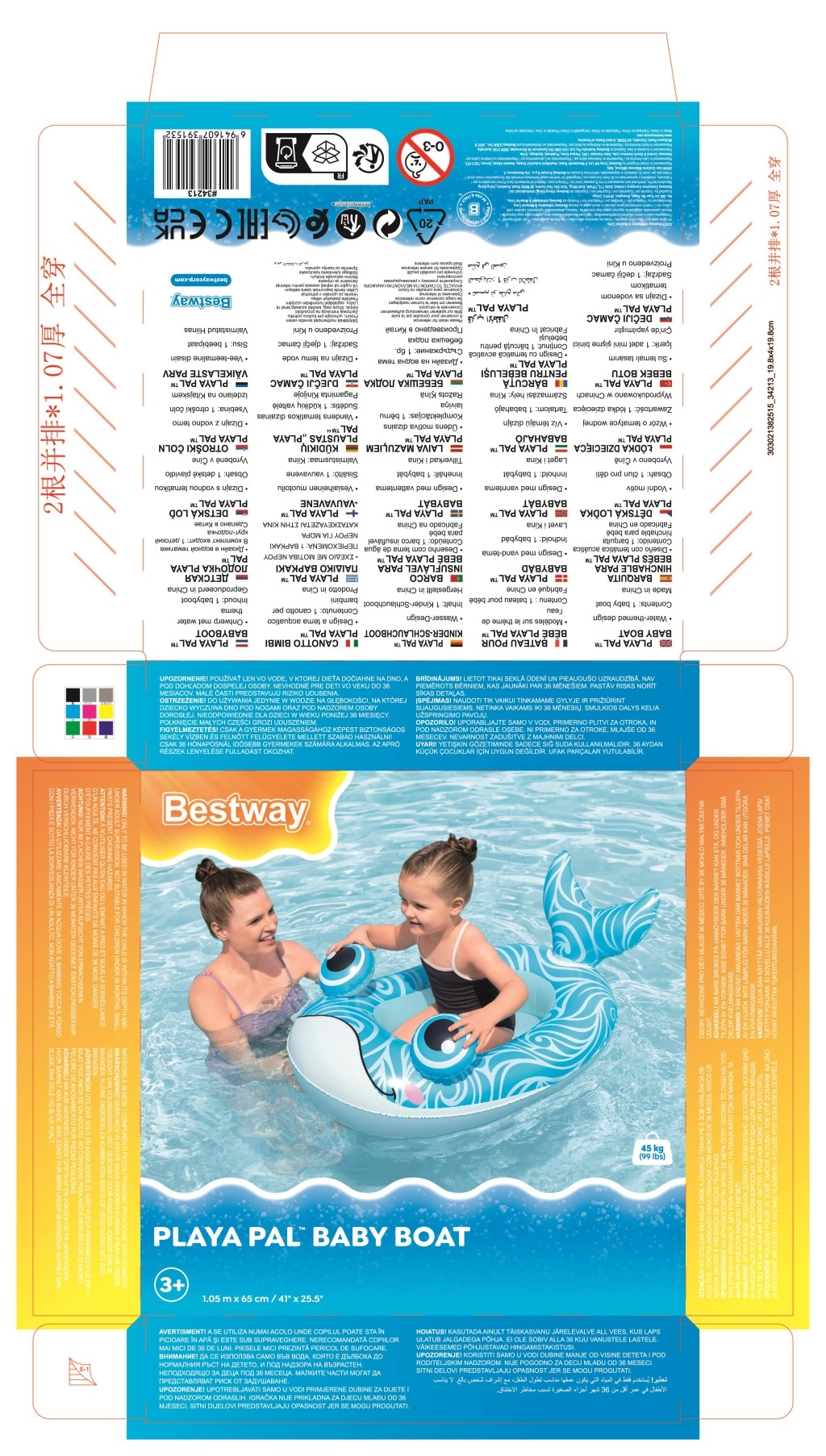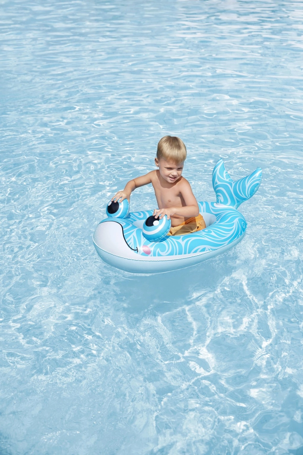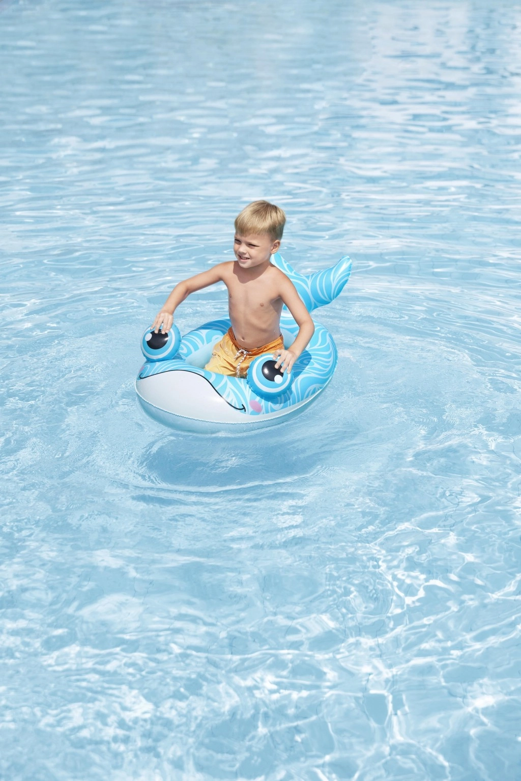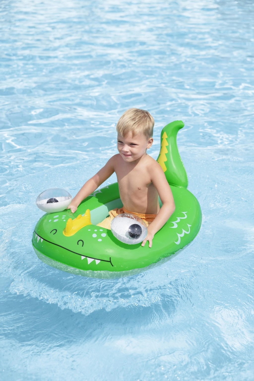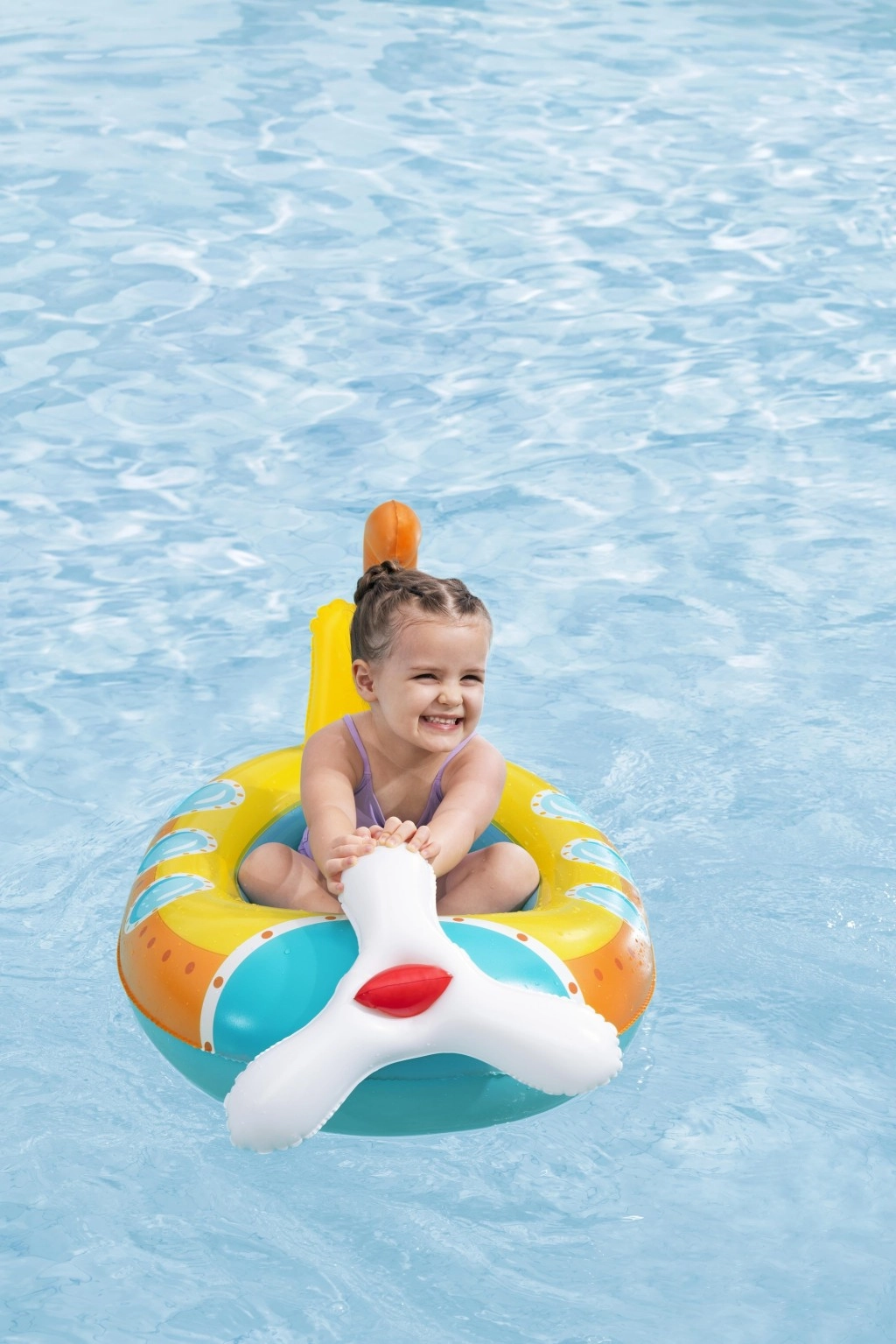 Pogodno za bazene, jezerca i mirne plaže. Preporučeno za djecu od 3 godine, s nosivošću do 45 kg. Roditelji će cijeniti stabilno sjedenje, glatke rubove i udoban unutarnji prostor koji pomaže zadržati dijete u sigurnom položaju tijekom igre.