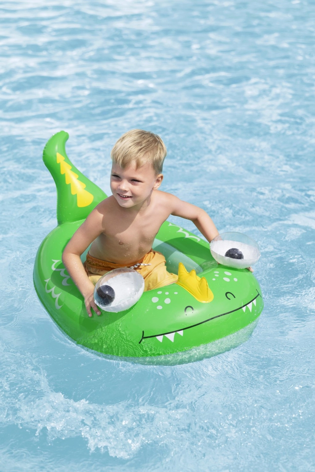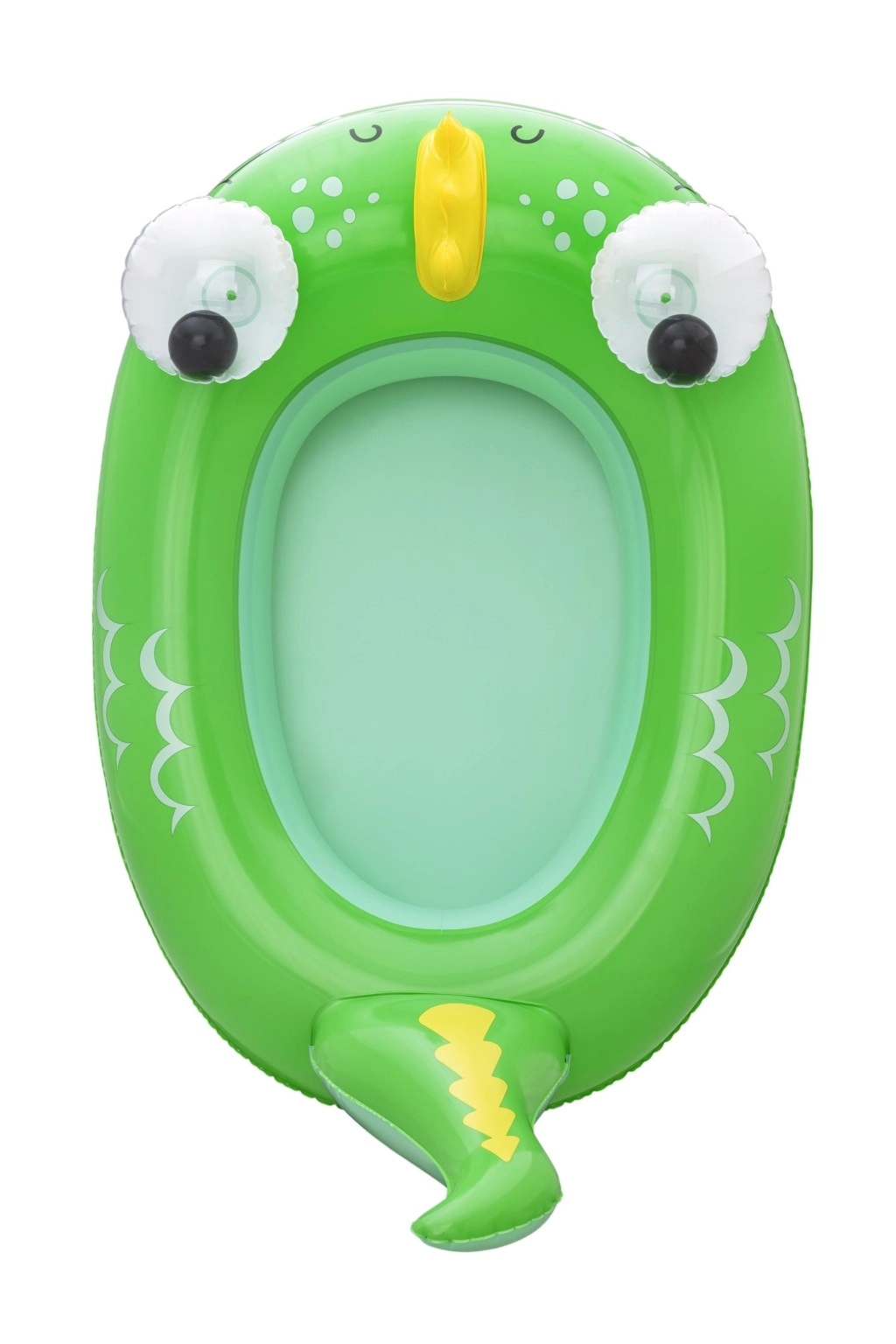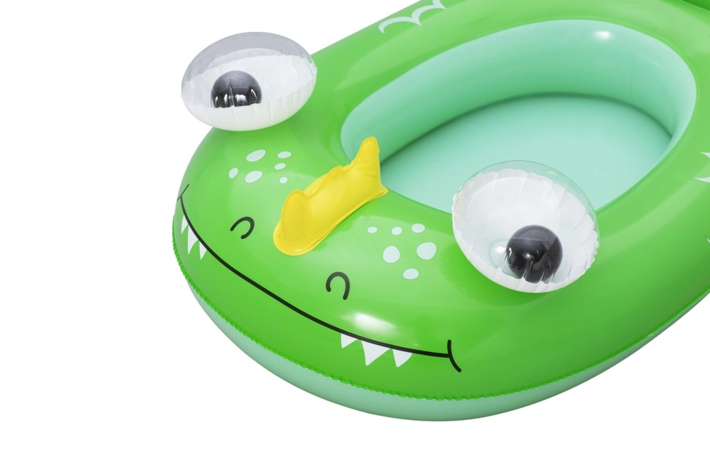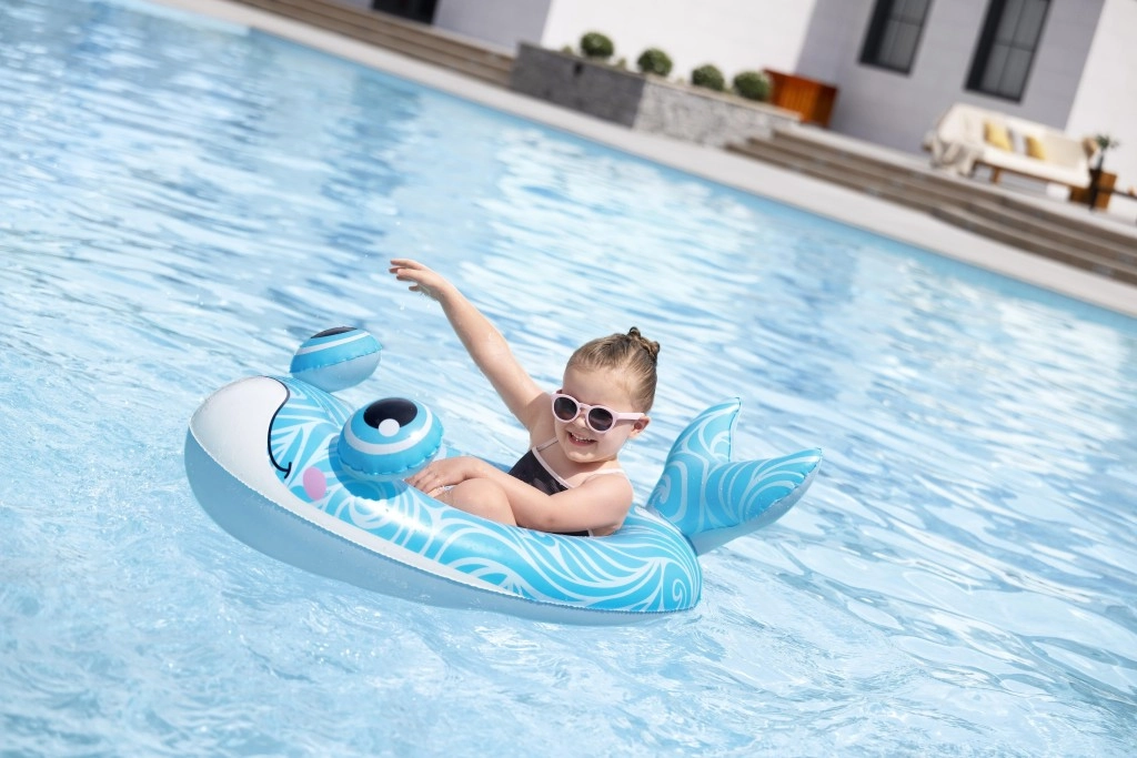 Svaki motiv donosi svoje razigrane detalje: plavi kit s bijelim spiralama i 3D očima, zeleni zmaj s izražajnim očima i žutim akcentima te žuto–tirkizna podmornica s bijelim propelerom za još više zabave. Sigurnosni ventili omogućuju brzo napuhavanje i ispuštanje zraka – idealno za obitelji na putu i vikend kupanje.