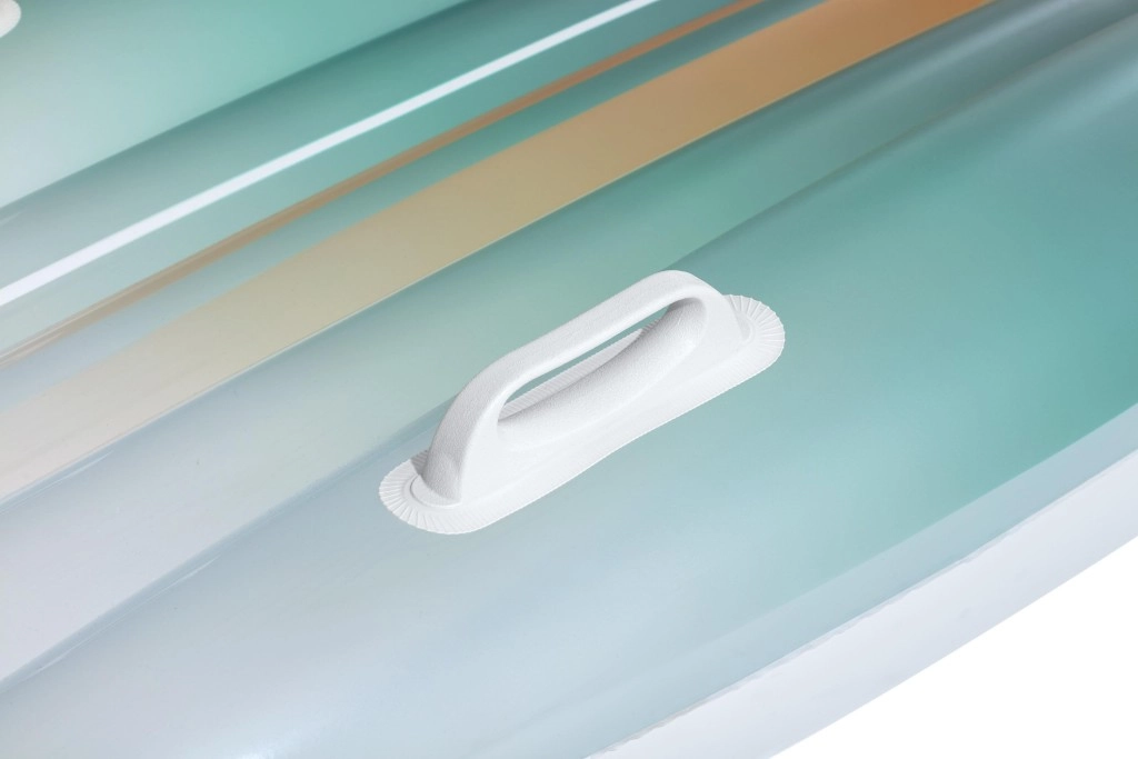 Zahvaljujući čvrstoj I‑beam konstrukciji ležalo je stabilno i udobno, dok rješenje s jednom komorom omogućuje brzo napuhavanje i ispuhavanje. U paketu je i zakrpa za manje popravke kako biste bezbrižno uživali u vodenim radostima cijelo ljeto.