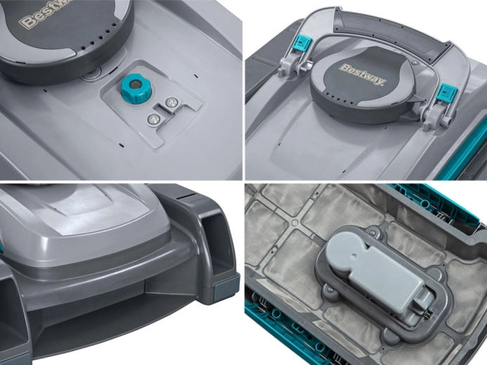 Pametni vodeni senzori aktiviraju robota nakon uranjanja i isključuju ga nakon vađenja iz vode, čime štite motor. Brzo punjenje 3–4 sata i bežična konstrukcija pružaju potpunu slobodu kretanja. Košare velikog volumena zadržavaju lišće, pijesak i insekte te se lako čiste filtrom s gornjim pristupom.