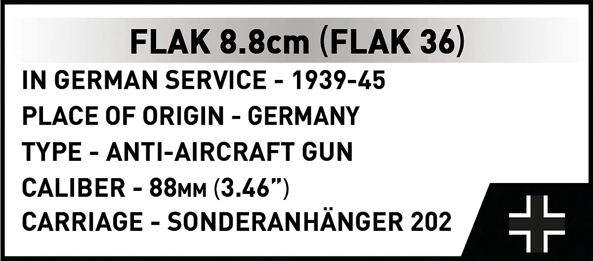 - Autentičan set 2 u 1: 8,8 cm Flak 36 na prikolici + polugusjeničar Sd.Kfz. 8