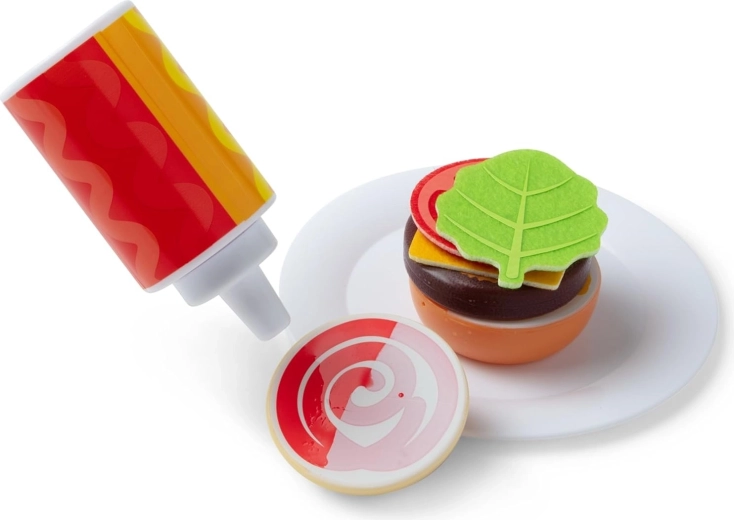Ne nedostaju ni filcani prilozi i peciva koji nakon vlaženja bočicom s umacima otkrivaju kečap i senf za još realističnije posluživanje. Gotove poslastice mogu se poslužiti na tanjuriću, razvrstati i spremiti u tekstilne vrećice za nošenje. Nakon igre sve pustite da se osuši i možete kuhati opet i opet – bez baterija i bez nereda, samo s vodom.