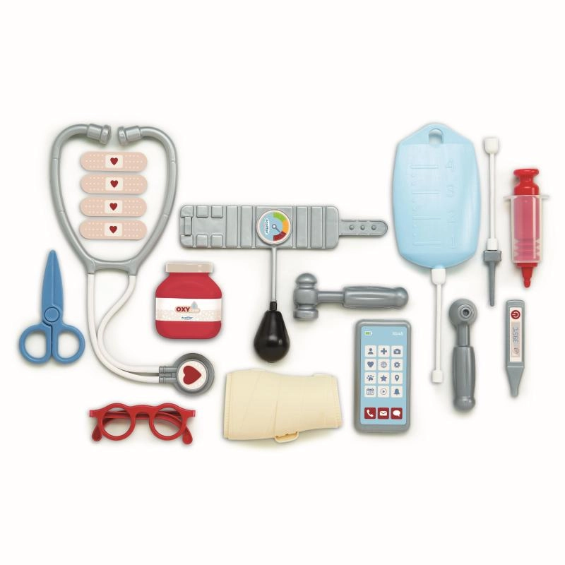 - 17 kom (stetoskop, naočale, telefon, tlakomjer, otoskop, refleksni čekić, bočica lijeka, toplomjer, infuzijska vrećica, injekcijska šprica, gipsana ortoza, škare, 4× flaster)