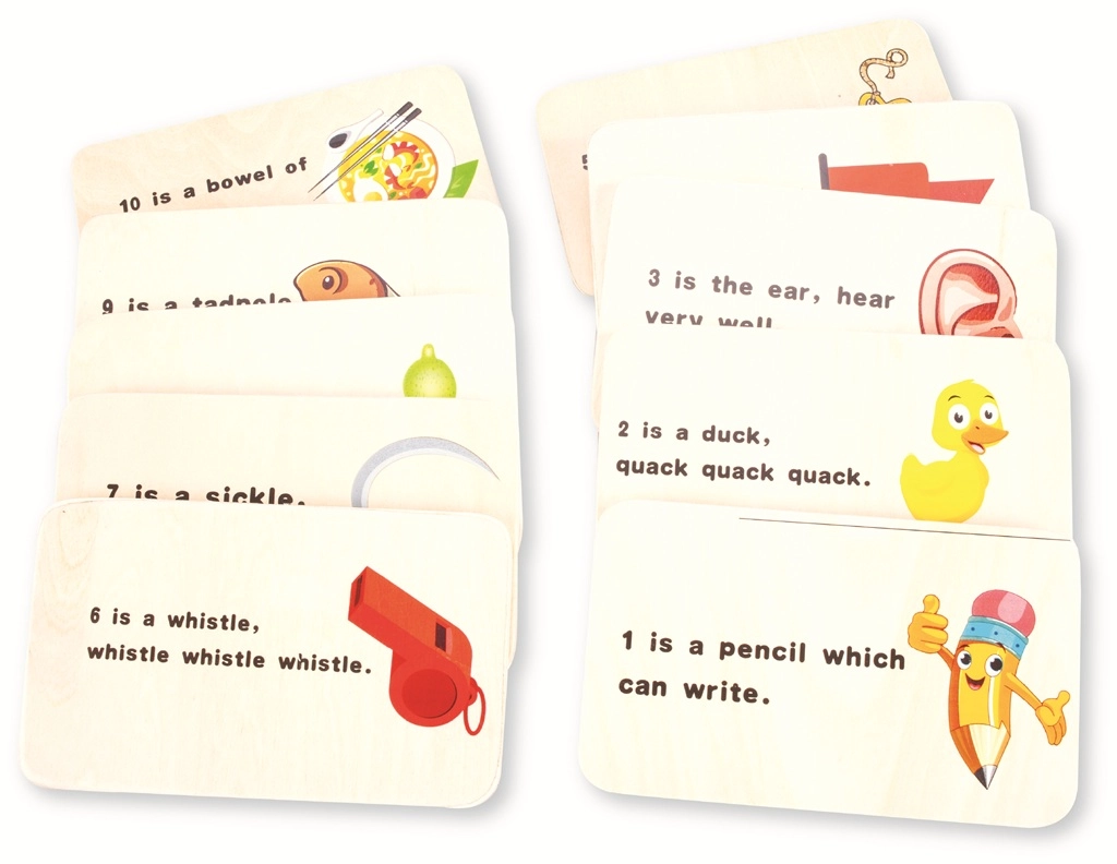 U setu se nalaze edukativne kartice s jednostavnim rimama na engleskom i šarenim slikama koje potiču čitanje, rječnik i razumijevanje zadataka.