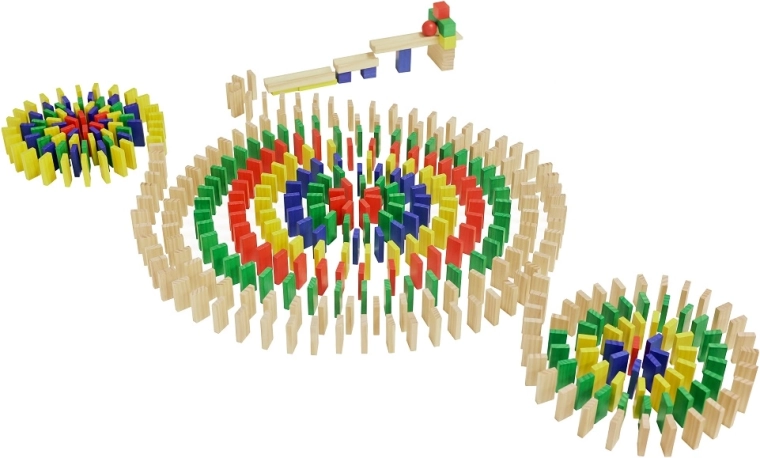 Sagradite zadivljujuće staze i promatrajte fascinantnu lančanu reakciju pri rušenju domina. Ovaj veliki set od 800 dijelova nudi široke mogućnosti slaganja – od jednostavnih linija do razrađenih spirala i uzoraka. Zahvaljujući glatkoj površini i preciznim dimenzijama, kockicama se lako rukuje, a konstrukcije su stabilne.