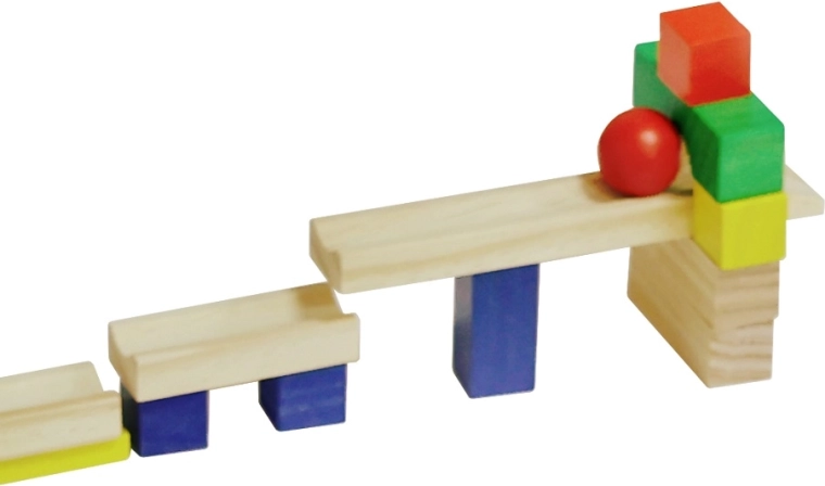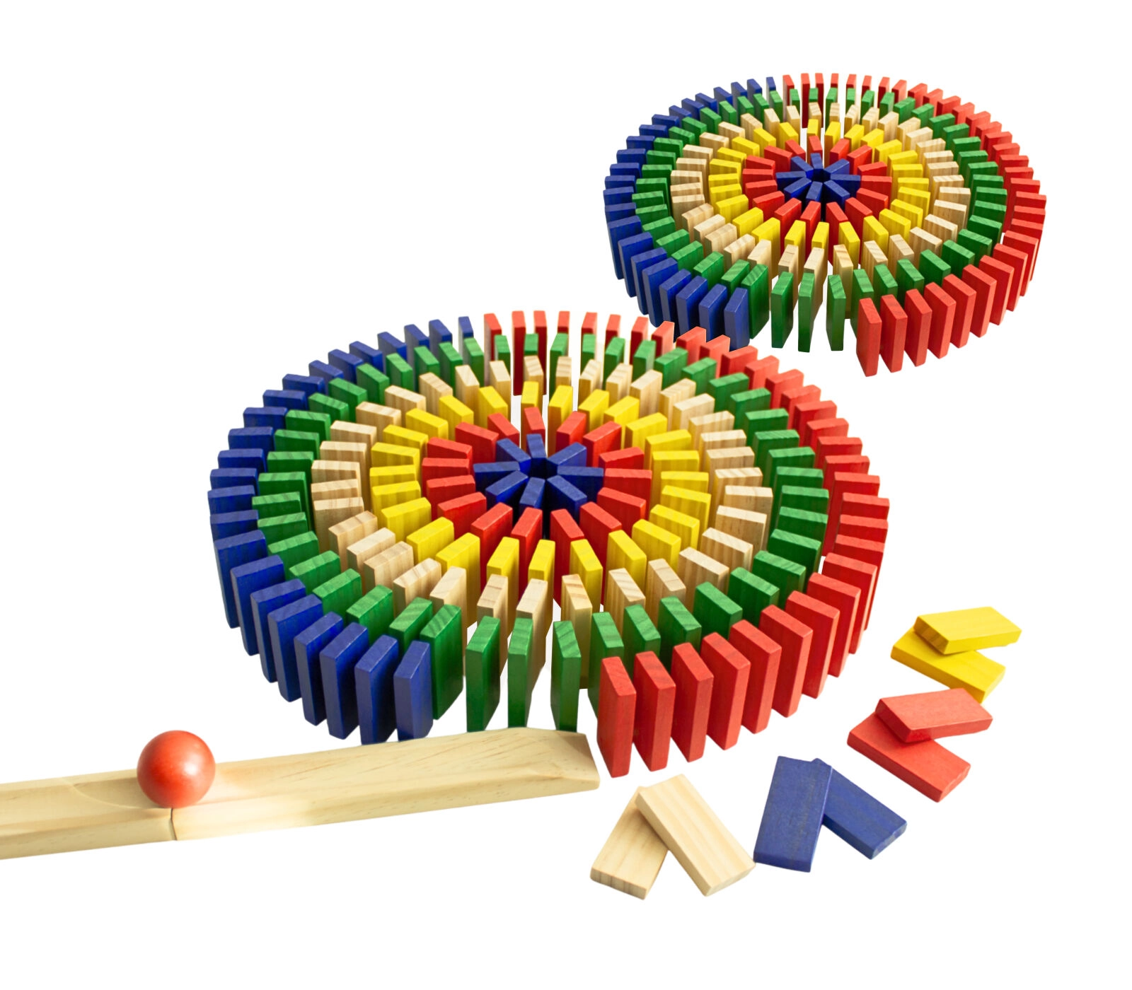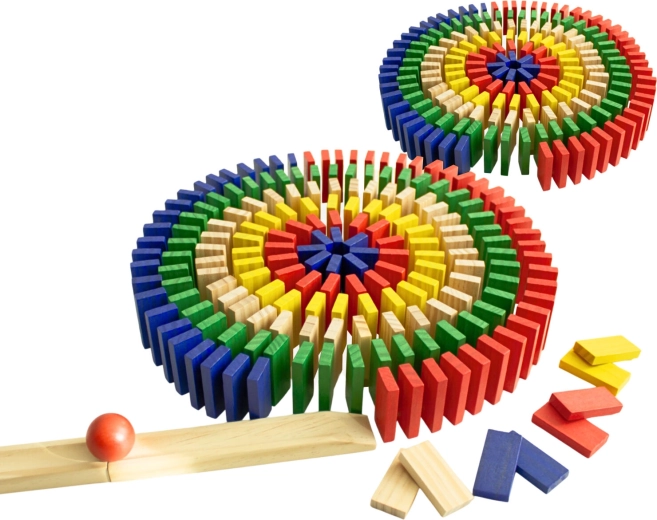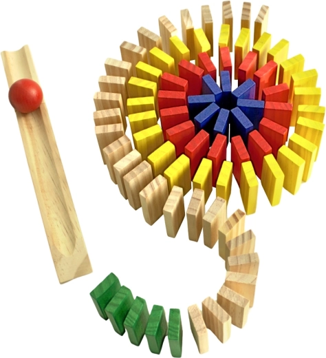 Dio seta je drvena rampa i kuglica za efektan start domina. Promatrajte glatko i stabilno rušenje kocaka.
