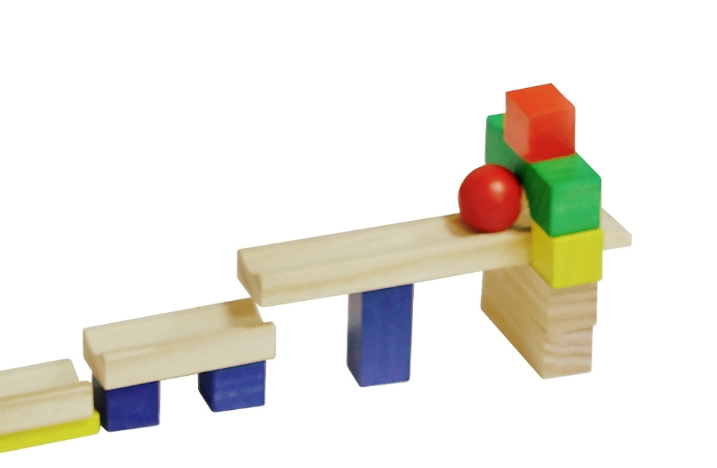 Precizno izrađene drvene kockice i kuglica s rampom osiguravaju pouzdano rušenje i atraktivan domino efekt bez zastajkivanja.