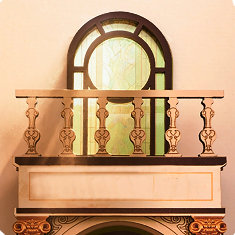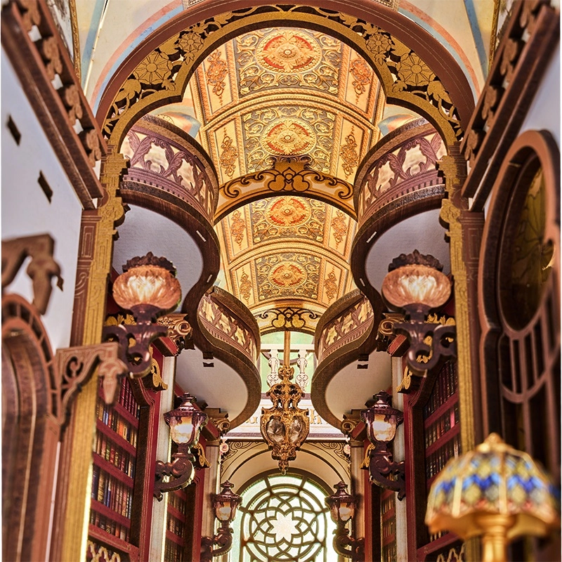 Ovaj dojmljiv book nook spaja viktorijansku arhitekturu, rimske stupove, balkone i vitraž prozore u minijaturnu scenu punu atmosfere. Unutra ćete naći crvene drvene police za knjige, zasvođena vrata, mahagonijski pult s otvorenom knjigom i funkcionalan LED luster za ugodno osvjetljenje.