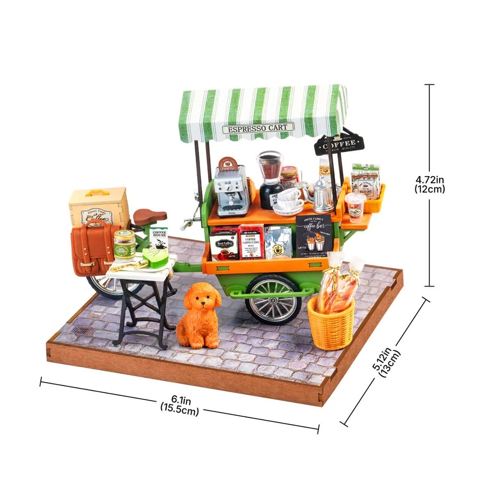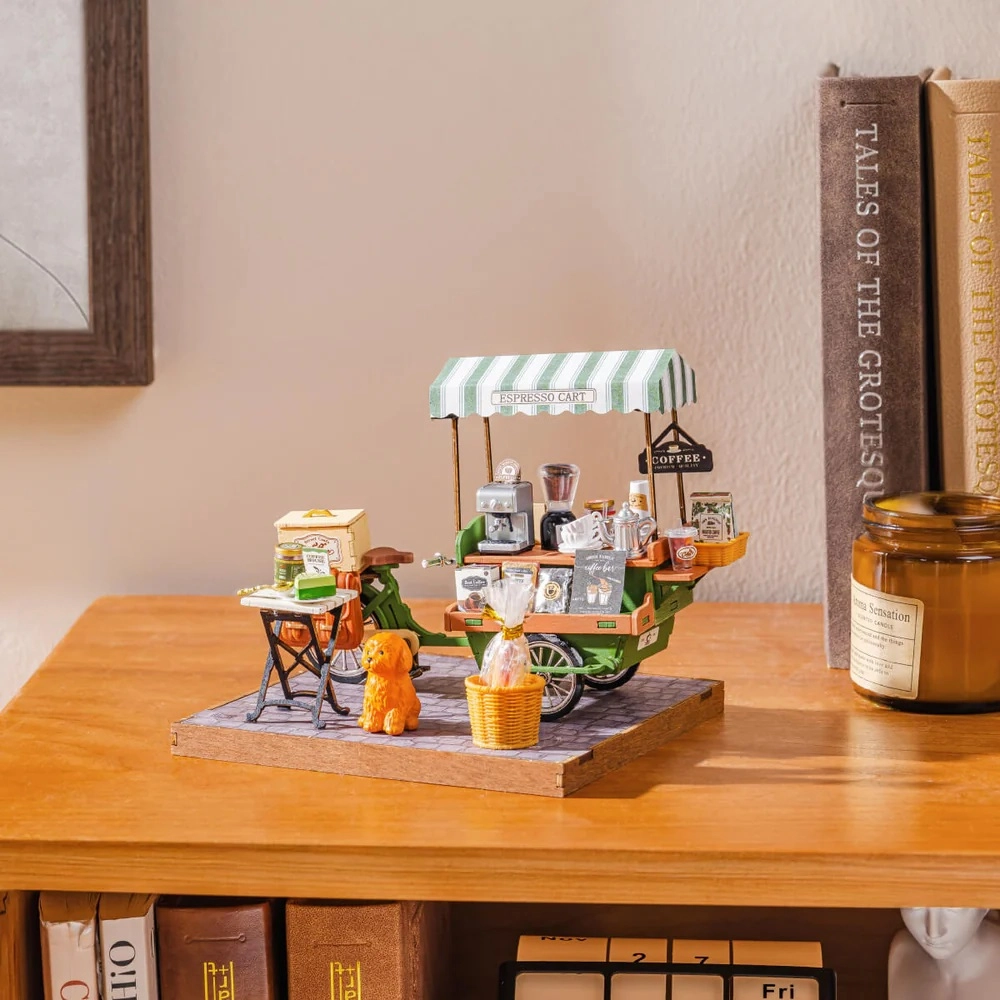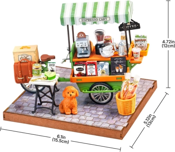 Sastavite vlastiti minijaturni espresso štand i uživajte u kreativnoj zabavi bez ljepila. Ova dizajnerska 3D slagalica brenda RoboTime nudi 162 precizno izrezana dijela, srednju razinu težine i realistične detalje poput prugastog krovića, funkcionalnih kotača i bogate opreme. Sjajno za razvoj fine motorike, logičkog razmišljanja i kao stilska dekoracija u interijeru.
