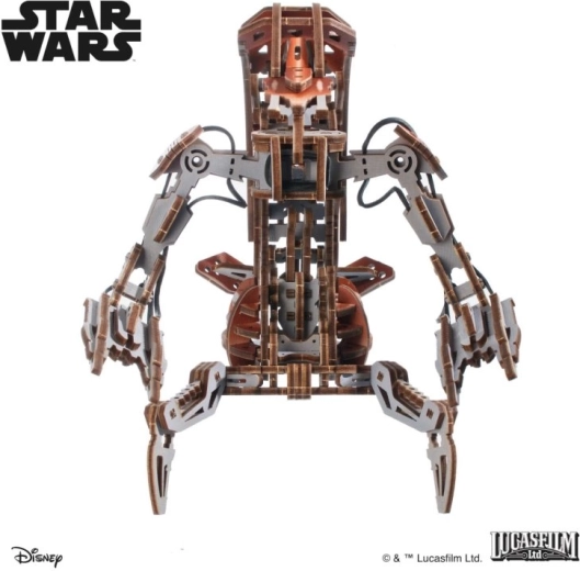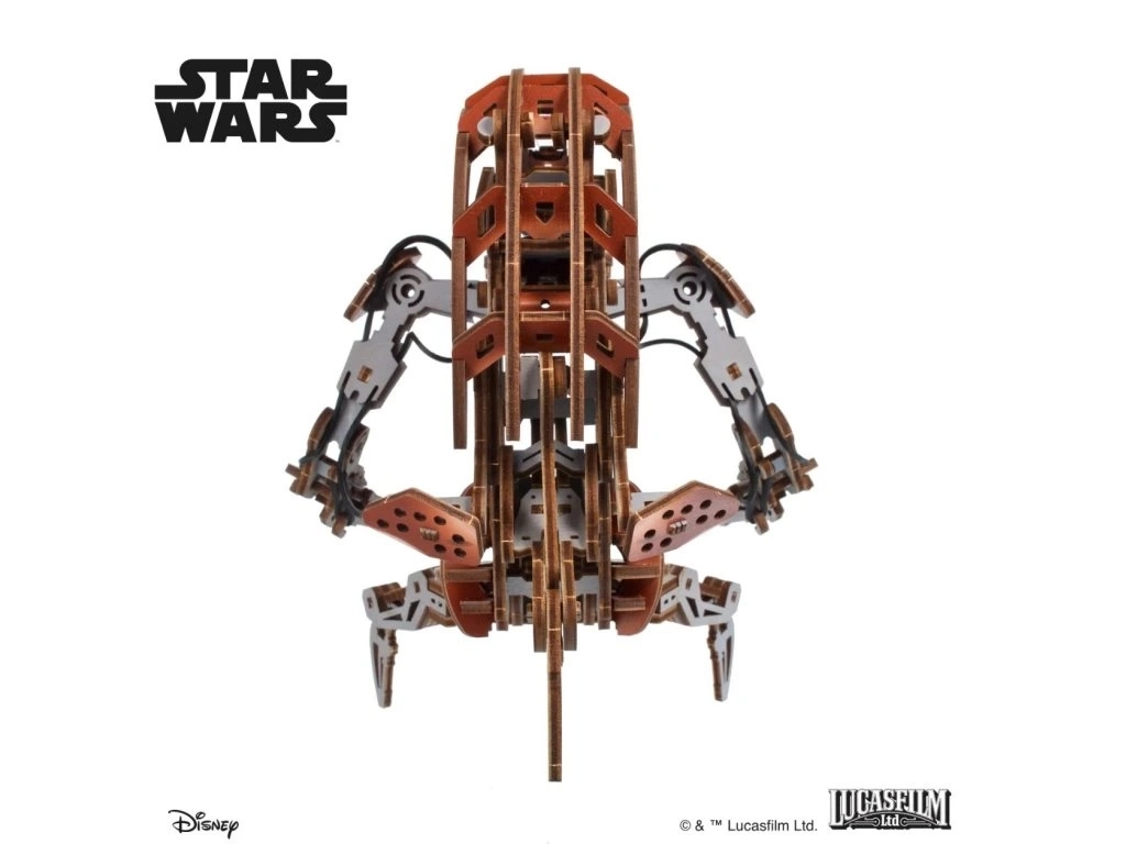 Sastavite vlastitog ikoničnog borbenog droida DROIDEKA iz svijeta STAR WARSA kao preciznu 3D mehaničku slagalicu Ugears. Model se sastavlja bez ljepila, sadrži 180 dijelova i zahvaljujući pametnom mehanizmu može se pretvoriti iz kugle u borbeni položaj. Tu su i dva načina aktivacije razvijanja, neovisno preklopive blasterske ruke te okretna glava za autentičan doživljaj gradnje i izlaganja.
