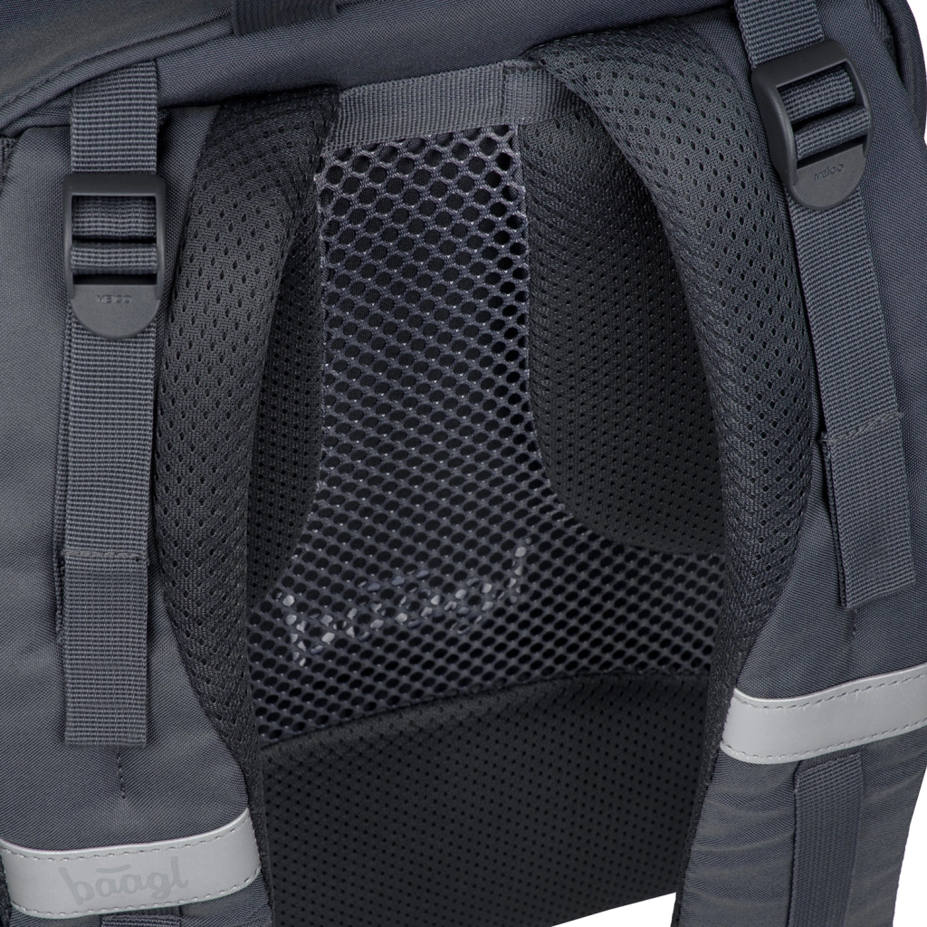 Lagana i ergonomična školska torba BAAGL Core Logo za djecu od 3. razreda nudi kapacitet 25 l, samo 900 g, anatomski oblikovana leđa s ventilacijom i podstavljeni pretinac za 15" prijenosno računalo. Izrađena je od recikliranog vodoodbojnog materijala s certifikatom GRS, ima pouzdane YKK patentne zatvarače, reflektirajuće elemente i praktičnu organizaciju u tri komore.