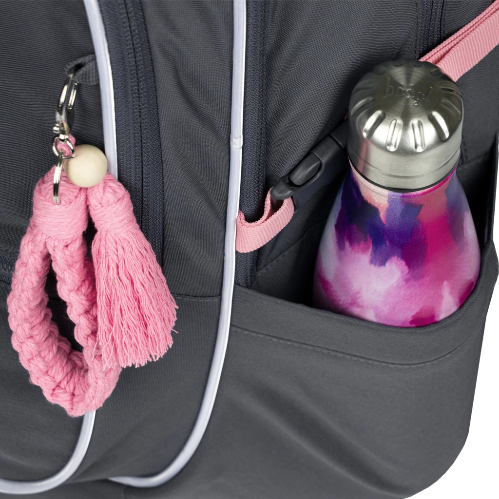 Stilski školski set BAAGL Core Logo u ružičastoj boji uključuje prostrani ruksak s anatomski oblikovanom leđnom stranom, podstavljenim džepom za 15" prijenosno računalo, izdržljivu pernicu i laganu vrećicu za tjelesni. Izrađeno od recikliranih, vodootpornih materijala s certifikatom GRS, opremljeno reflektirajućim elementima i YKK patentnim zatvaračima za dugi vijek trajanja. Idealno odabir od 3. razreda osnovne škole.