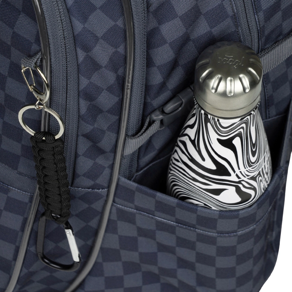 Praktičan školski set BAAGL za učenike od 3. razreda: lagana torba zapremnine 25 l, prostrana pernica i vrećica za obuću u usklađenom dizajnu. Torba nudi anatomski oblikovana leđa s ventilacijom, podstavljeni pretinac za 15" prijenosno računalo, 3 odvojene komore, termo-džep za užinu i reflektirajuće elemente. Cijeli set izrađen je od recikliranih, vodootpornih materijala s GRS certifikatom i koristi izdržljive YKK patentne zatvarače.