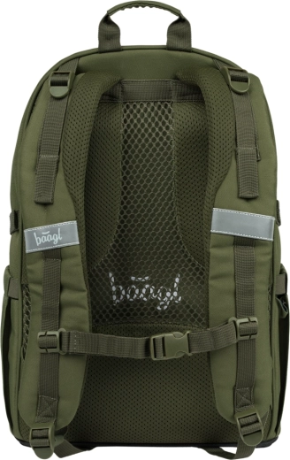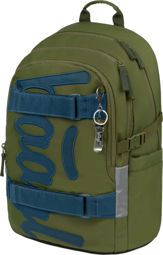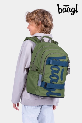 Lagana i izdržljiva školska torba BAAGL Skate Olive GRS idealna je za učenike od 3. razreda. Nudi anatomski oblikovana leđa, 3 prostrana pretinca, podstavljeni džep za 15" prijenosno računalo, trake za pričvršćivanje skateboarda i niz reflektirajućih elemenata za sigurnost. Izrađena je od recikliranog, vodoodbojnog materijala s kvalitetnim patentnim zatvaračima YKK.