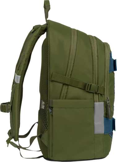 Ruksak SKATE OLIVE ima anatomski oblikovana leđa s pojačanjem u lumbalnom području, potpuno podesive kompresijske trake i tri odvojena pretinca. Unutra ćete pronaći podstavljeni džep za 15" prijenosno računalo ili tablet te praktičan organizator. Bočni džepovi primaju bocu, a reflektirajući elementi povećavaju vidljivost.