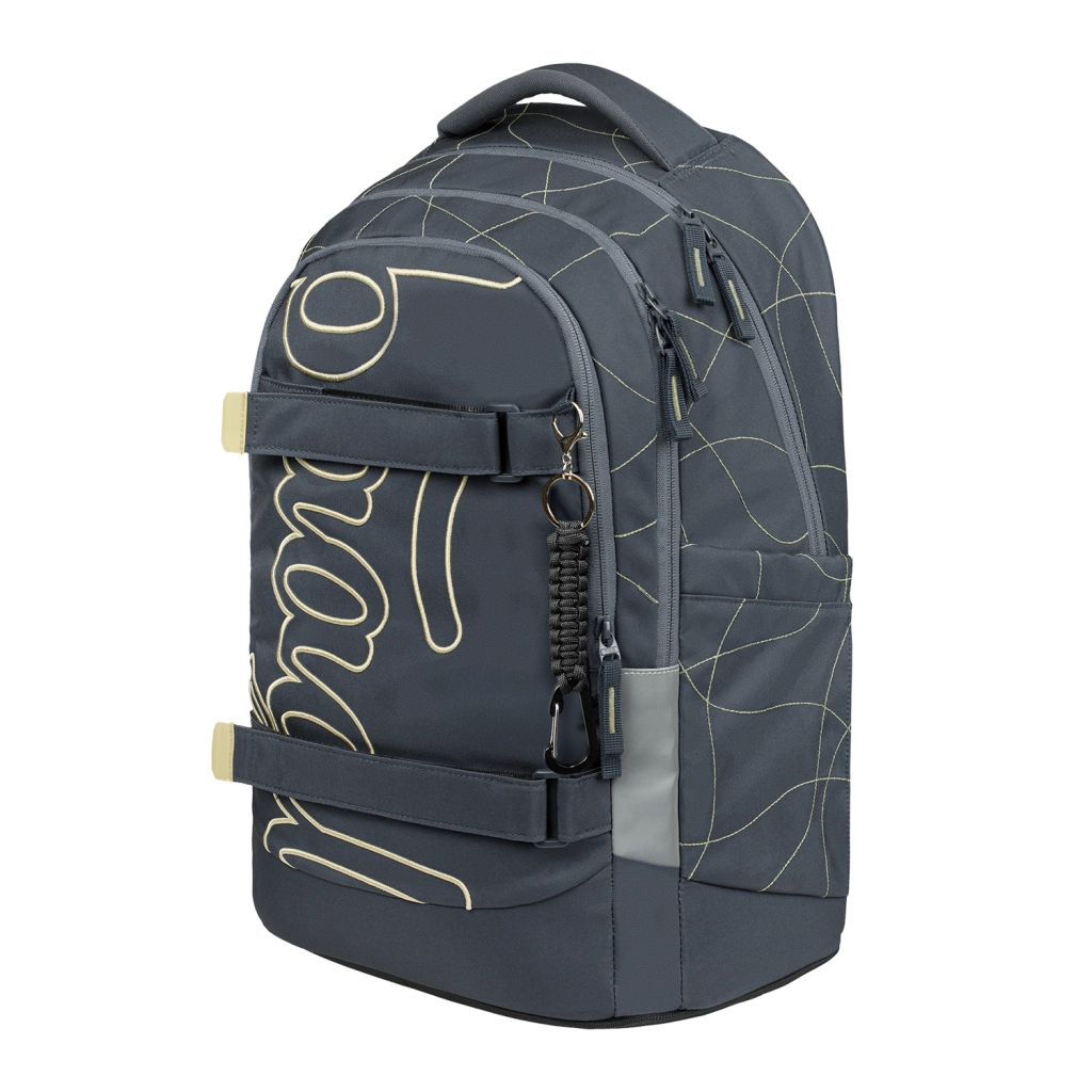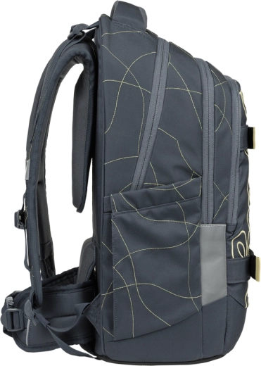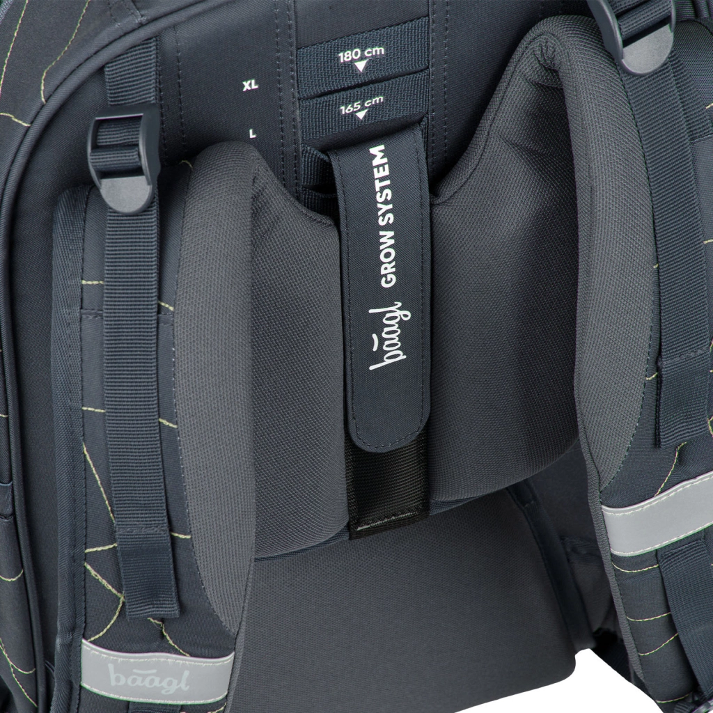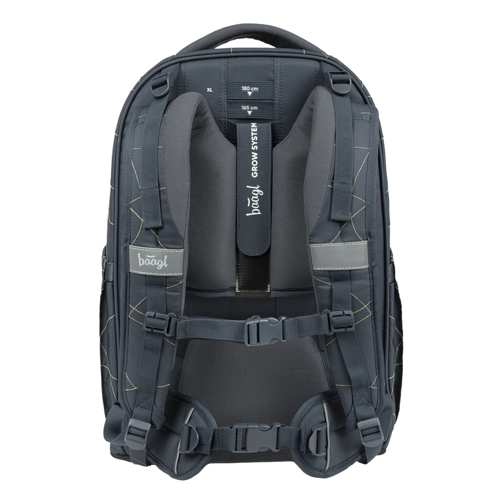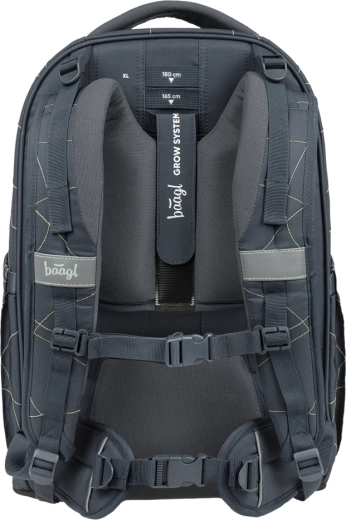 BAAGL Skate Max Wave GRS je promišljena torba za učenike i studente visine 135–185 cm. Zahvaljujući kliznom leđnom sustavu udobno „raste“ s djetetom u čak četiri veličine. Konstrukcija s EVA pojačanjem odlično drži oblik, odvojivi lumbalni pojas povećava stabilnost, a ergonomski oblikovane naramenice s finom mrežicom štite područje vrata.