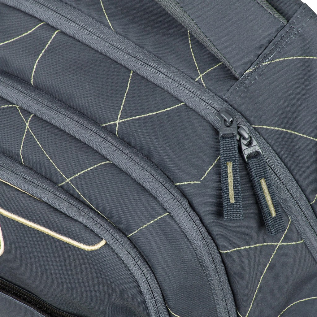 Trokutno raspoređena tri pretinca, baršunasti džep za prijenosno računalo ili tablet i dvosmjerni YKK patentni zatvarači za brz pristup i sigurno pohranjivanje školskog pribora.