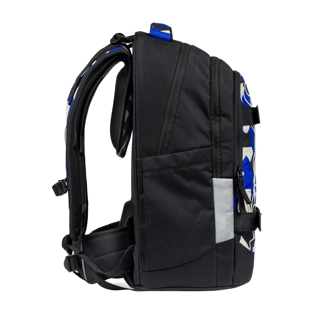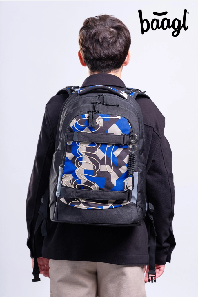 Školski set BAAGL Skate Max Variety dizajniran je za djecu od otprilike 3. razreda osnovne škole pa do studenata. Glavna zvijezda je kompaktan ruksak od recikliranog, vodoodbojnog materijala s podesivim leđnim sustavom za visinu 135–185 cm. EVA ojačanja drže oblik, odvojivi lumbalni pojas rasterećuje leđa, a brojni reflektirajući elementi povećavaju vidljivost. Trokomeni raspored s baršunastim pretincem za prijenosno računalo štiti elektroniku, bočni džepovi primaju bocu, a dvosmjerni YKK patentni zatvarači omogućuju lak pristup.