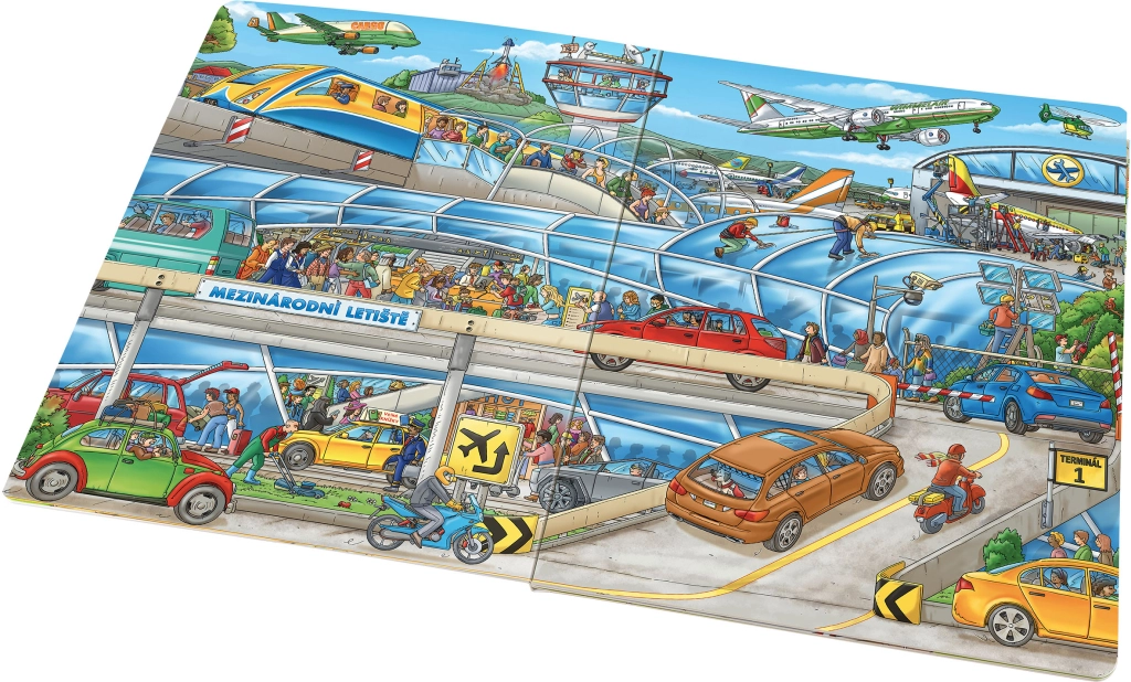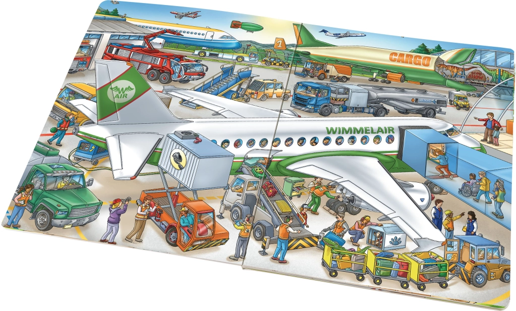 Ova velika slikovnica provest će djecu užurbanim okruženjem zračne luke, od dolaska u terminal pa sve do slijetanja na more. Na svakoj stranici nalaze se brojne detaljne ilustracije i priče zahvaljujući kojima djeca shvaćaju što se na zračnoj luci događa – od prijave prtljage do uzlijetanja u oblake.