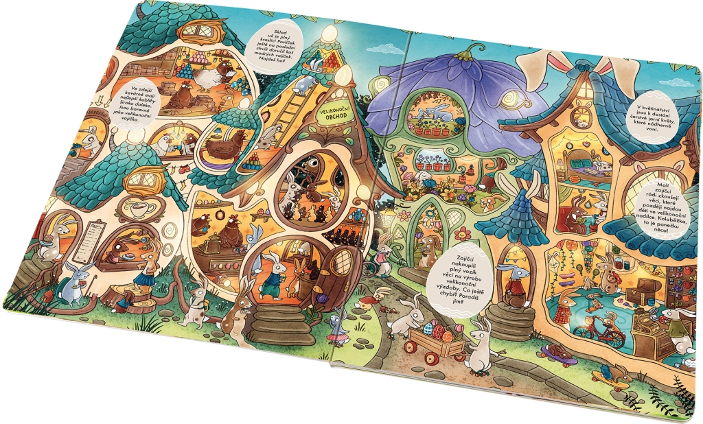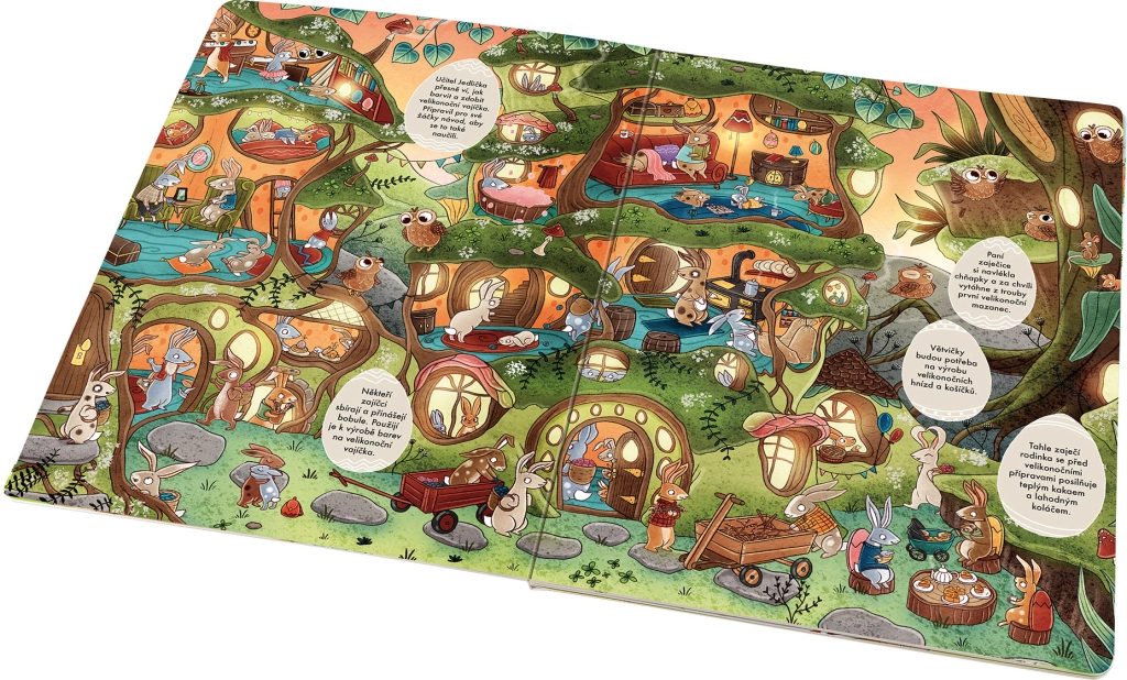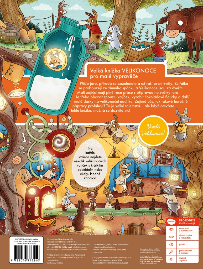 Ova lijepo ilustrirana knjiga donosi djeci proljetno raspoloženje i približava uskrsne tradicije na zabavan način. Zečići imaju pune šapice posla – boje jaja, pripremaju darivanje i priređuju iznenađenja. Djeca mogu zaviriti u njihov tajanstveni svijet i pritom se kroz igru vježbati u čitanju i koncentraciji.