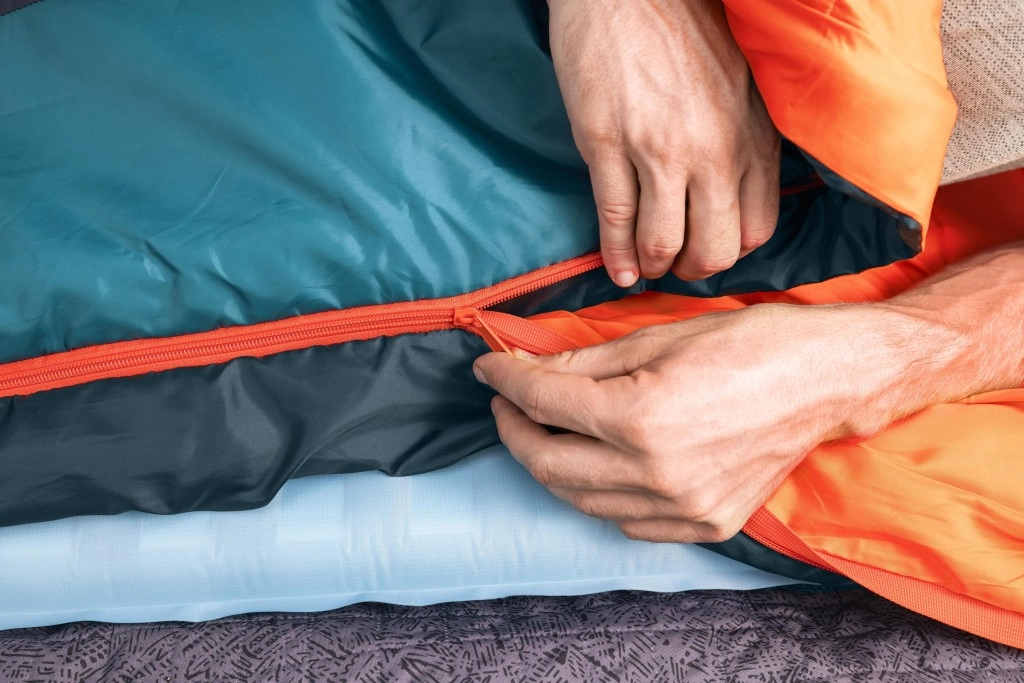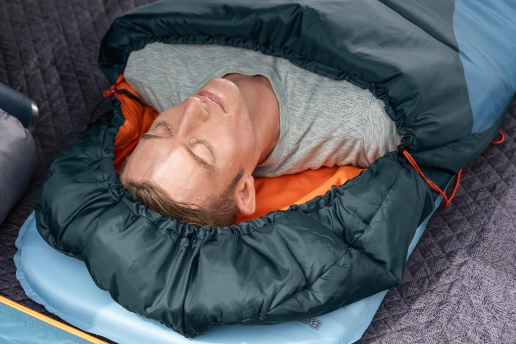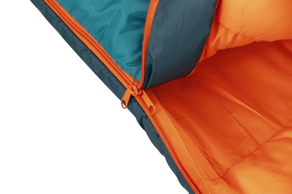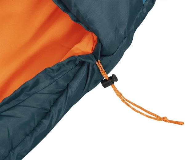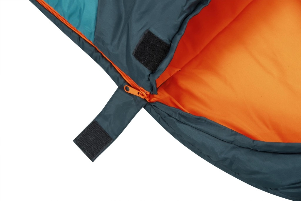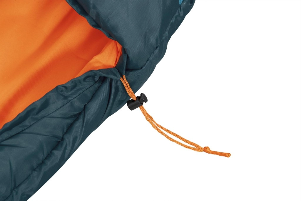 Dvosmjerni zatvarač po cijeloj duljini s izolacijskim preklopom i ramenim preklopom štiti od propuha, dok zatezna kapuljača zadržava toplinu oko glave tijekom hladnih noći. Izdržljiv vanjski 210T reciklirani poliester i nježna unutarnja podstava 190T ugodno griju i dobro dišu. Zahvaljujući kompresijskoj vreći vreća se lako pakira i štedi prostor u ruksaku (ukupna masa oko 1,4 kg).