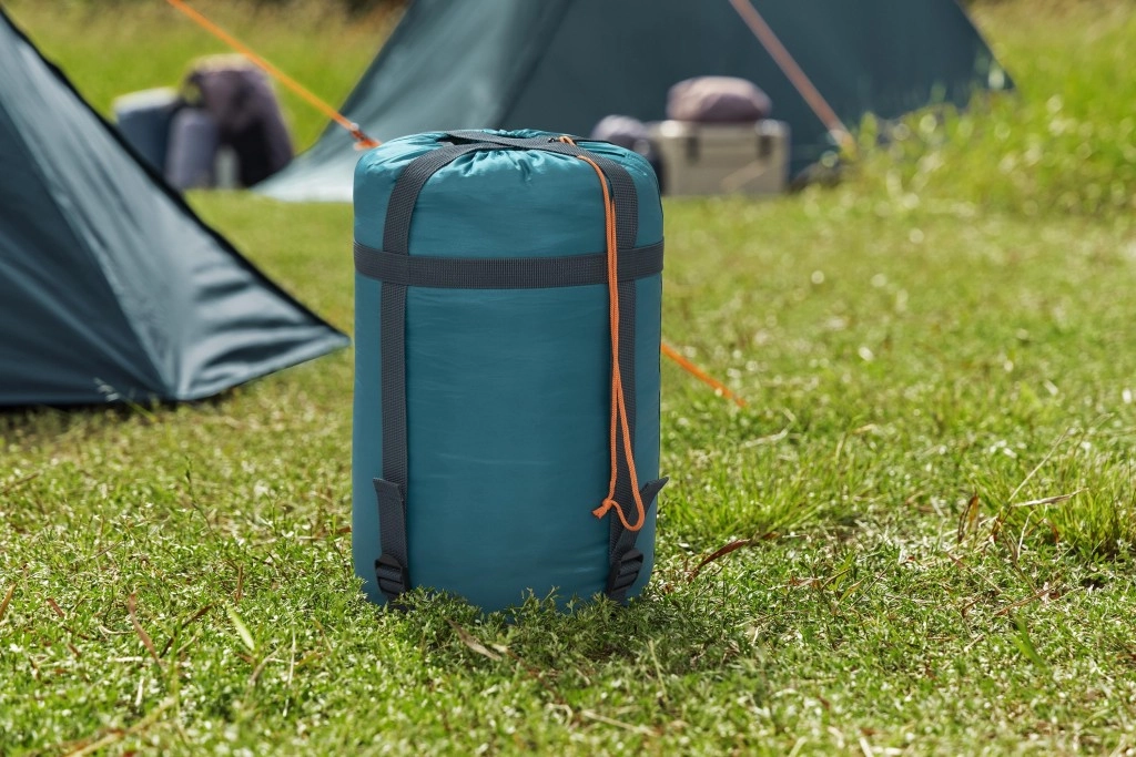 Reciklirani materijali s GRS certifikatom i kompresijska vreća za male transportne dimenzije. Idealno za treking i višednevne izlete.