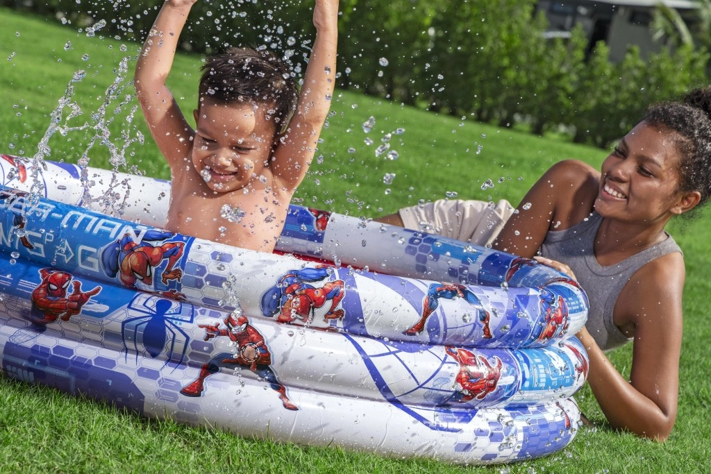Priredite djeci ljetno osvježenje s na napuhavanje bazenom s tri prstena s motivom MARVEL SPIDER-MAN. Promjer 122 cm i visina 30 cm osiguravaju dovoljno prostora za igru, a stabilna troprstenasta konstrukcija i izdržljiv vinil sigurnost i dug vijek trajanja. Lako se napuhuje, prenosi i zahvaljujući upečatljivom dizajnu u plavoj, bijeloj i crvenoj boji djeca će ga odmah zavoljeti.