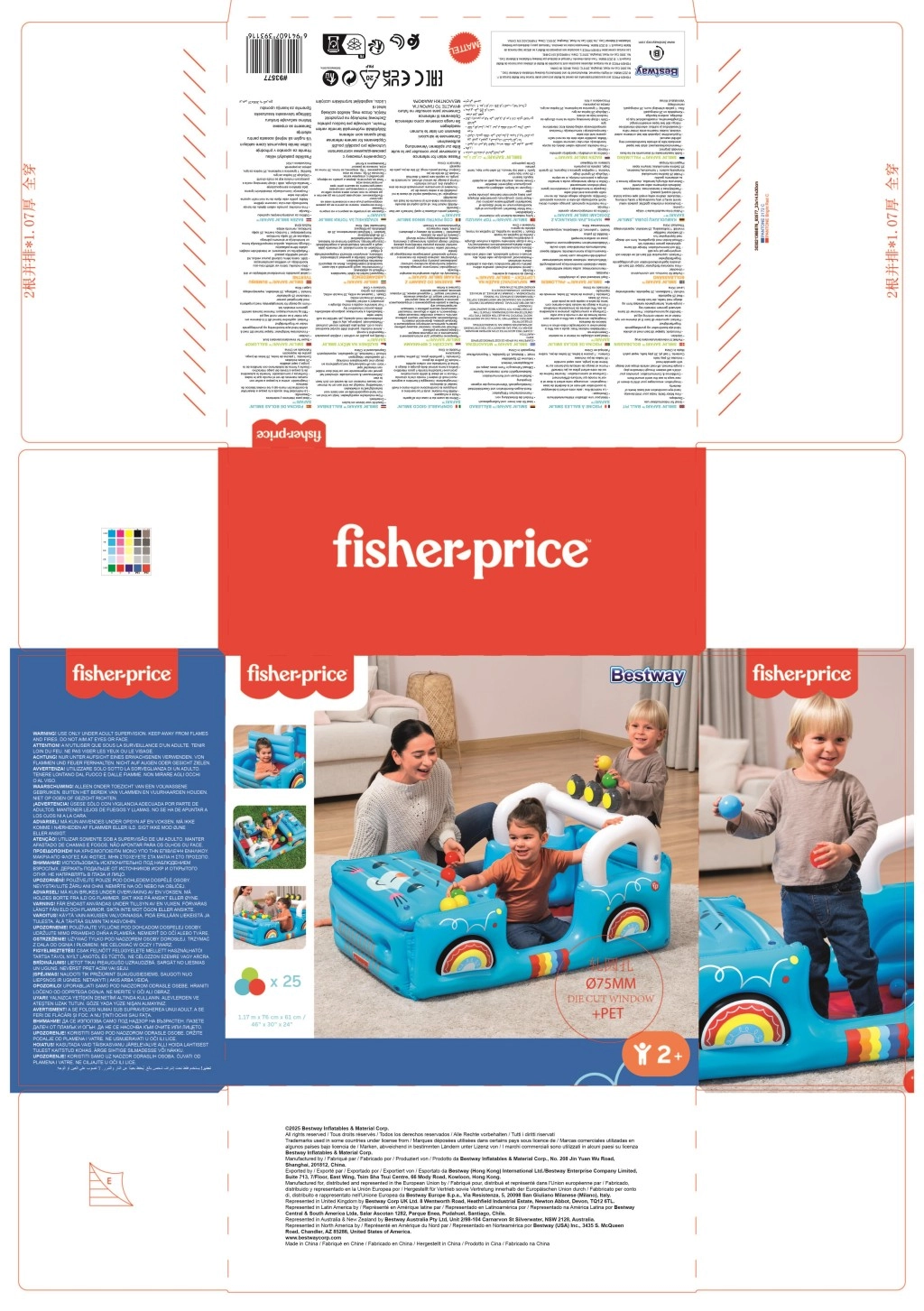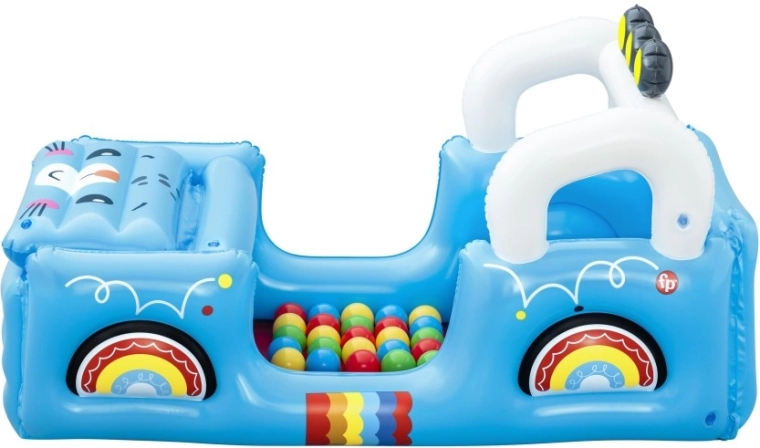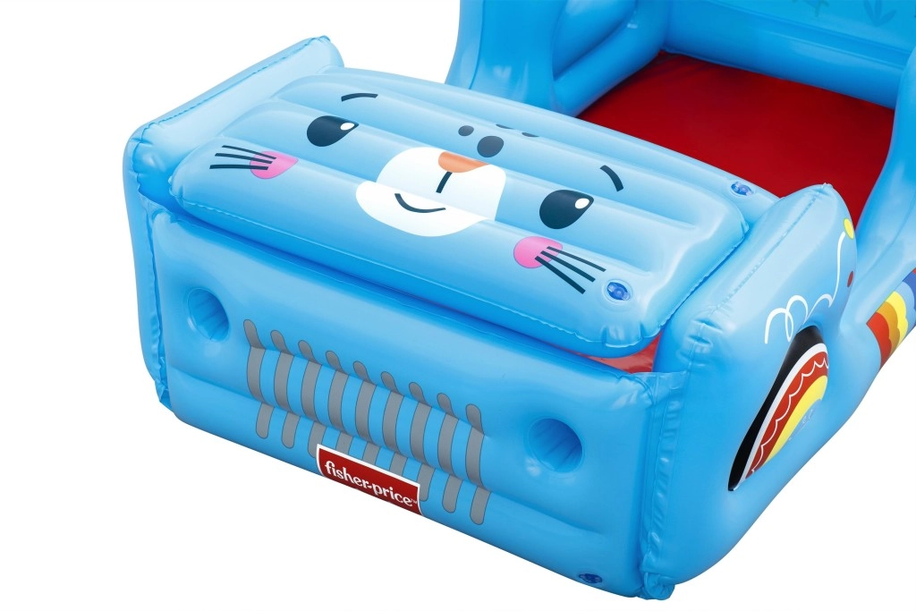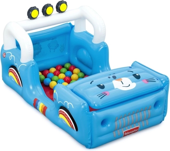 Zabavni, nafukavajući igraći auto FISHER-PRICE u safari stilu pretvara svaku sobu i vrt u siguran kutak pun radosti. Nudi meke, podstavljene stranice, prostrani bazen s lopticama i praktičnu otvarajuću haubu za lak pristup. U pakiranju je 25 šarenih loptica koje potiču finu motoriku i koordinaciju oko–ruka. Izdržljiv materijal, sigurnosni ventili i zakrpa za popravke osiguravaju dugu trajnost.