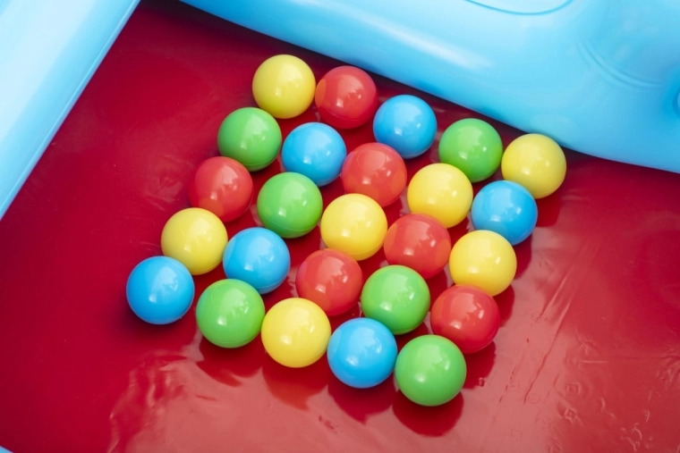 Nafukavajuće stranice i podstavljeni pod štite tijekom igre te osiguravaju udobnost i stabilnost mališana pri sjedenju, puzanju i bacanju loptica.