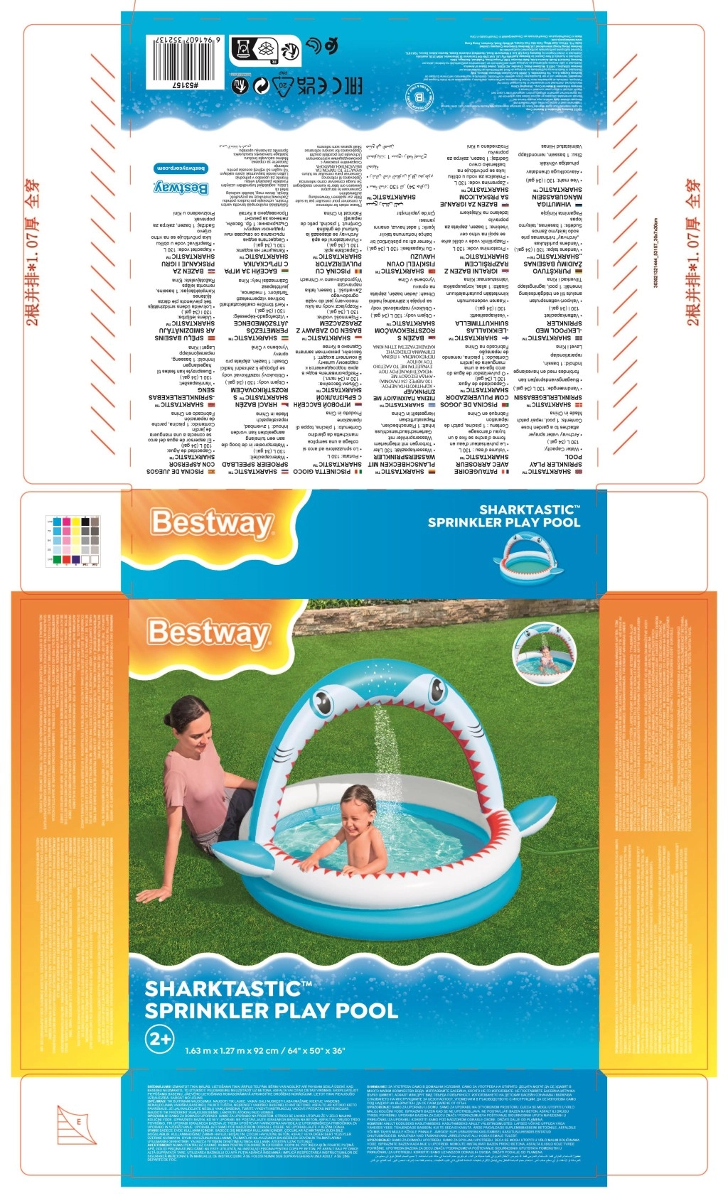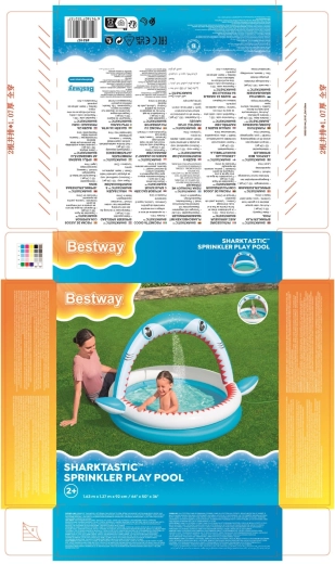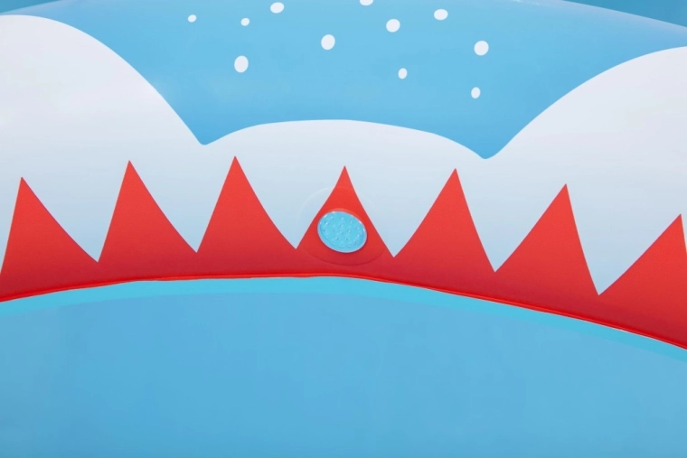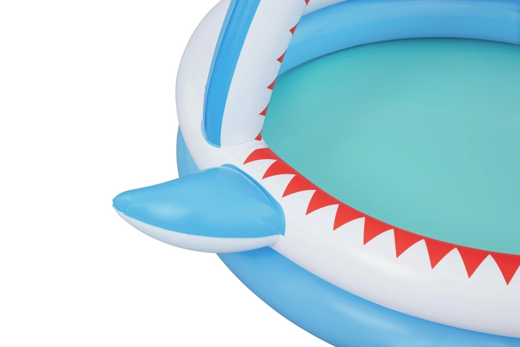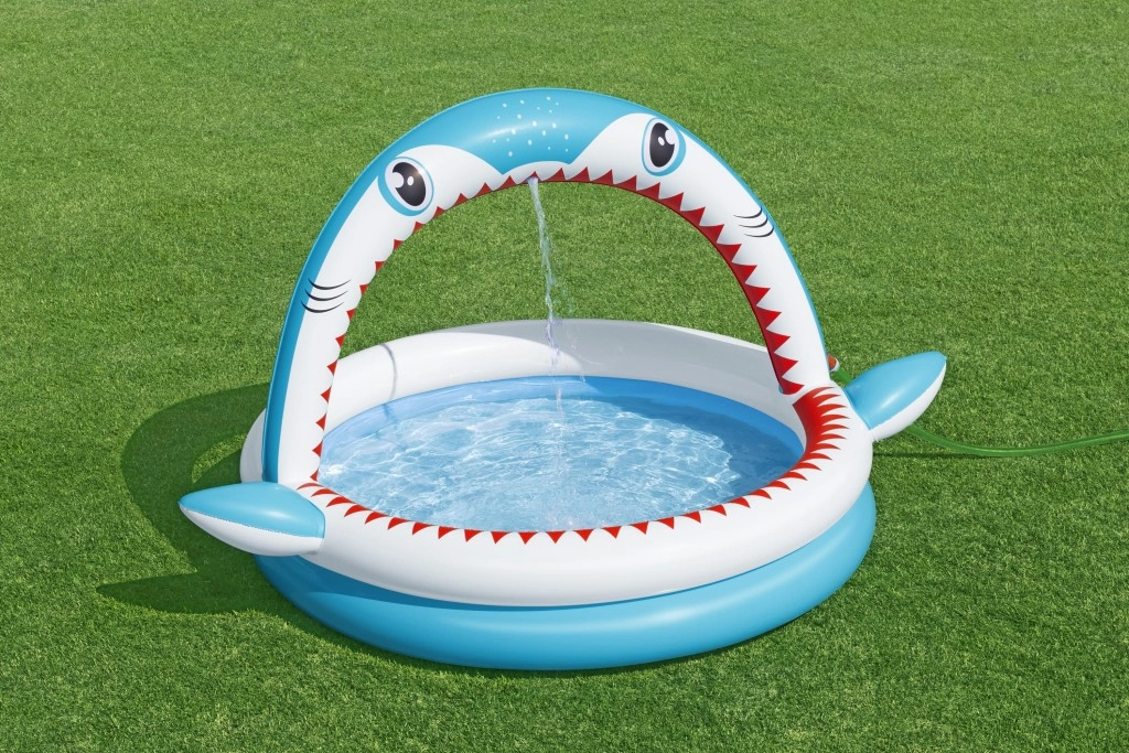 Učinite ljeto nezaboravno zabavnim s dječjim bazenom Sharktastic! Veseli dizajn u obliku morskog psa s crvenim „zubima” i bočnim perajama oduševit će svakog malog plivača. Luk u obliku ralja služi kao tuš-luk – dovoljno je spojiti vrtno crijevo i nježna vodena fontana pobrinut će se za ugodno osvježenje.