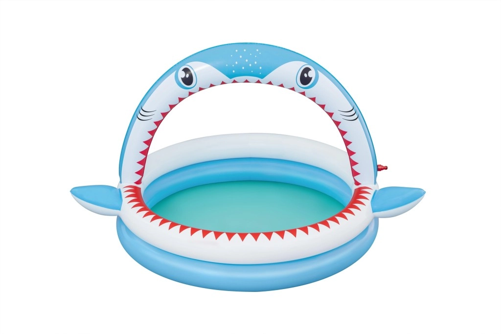 Zabavni na napuhavanje bazen u obliku morskog psa s integriranom špricom za osvježenje u vrućim danima. Nudi prostrane dimenzije 163 × 127 × 92 cm, mekane napuhavajuće stijenke i izdržljiv PVC materijal. Idealan za djecu od 2 godine, lako se napuhuje, spaja na vrtno crijevo i u trenu je spreman za vodene igre.