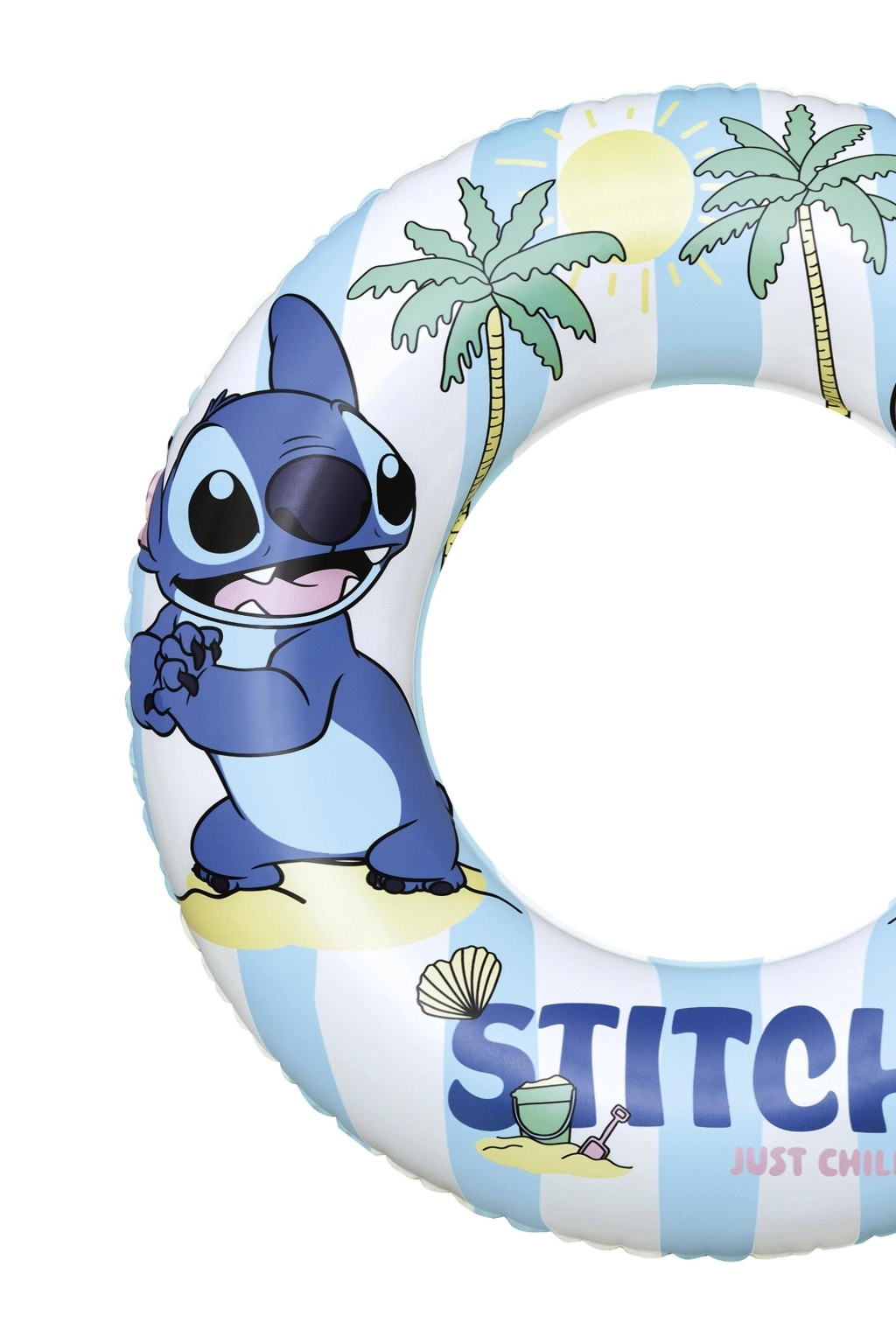 Veseli napuhujući prsten s motivom DISNEY STITCH promjera 56 cm savršen je za djecu 3–6 godina. Zahvaljujući izdržljivom vinilu, ugodnom držanju i lakom napuhavanju preko ventila nudi sigurnu potporu i puno zabave u bazenu i na moru. Pastelni prugasti dizajn s motivima palmi i plaže privući će djecu na prvi pogled.