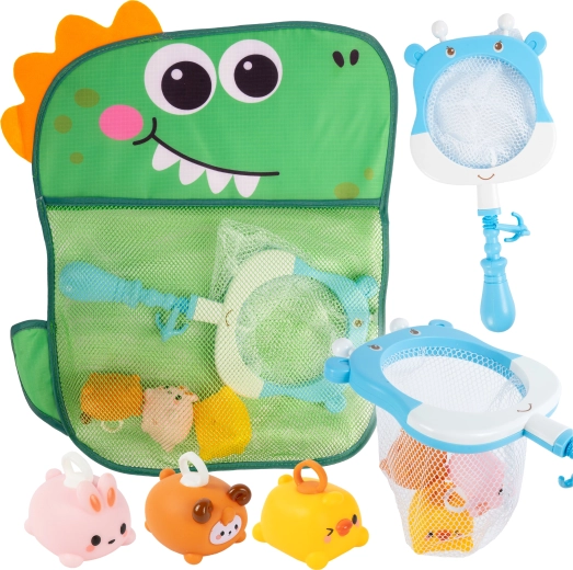 Ovaj set igračaka za kupanje pretvara svako kupanje u zabavan ribolov. Djeca mogu pomoću ribarskog štapa ili podberača hvatati životinjice koje imaju praktične prstenove za lako zahvaćanje. Zahvaljujući laganim materijalima, igračke se dobro drže i idealne su za male ruke.