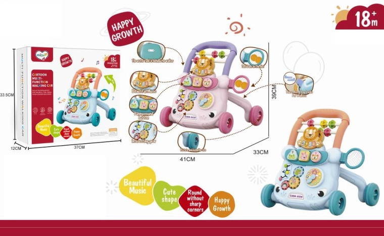 Ružičasta gurajuća hodalica u obliku lava izvrstan je pomoćnik za djecu koja uče hodati. Laka i stabilna konstrukcija od sigurne plastike bez oštrih rubova pruža sigurnost pri kretanju, dok integrirani zvučni efekti potiču osjetilnu stimulaciju i motiviraju na daljnje korake.