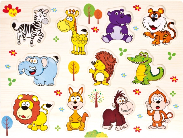 Ova velika drvena slagalica sa safari životinjama oduševit će male istraživače. Šareni umetni dijelovi lako se drže i pomažu djeci vježbati motoričke vještine i logičko razmišljanje. Stabilna drvena ploča drži oblik i osigurava ugodno slaganje.