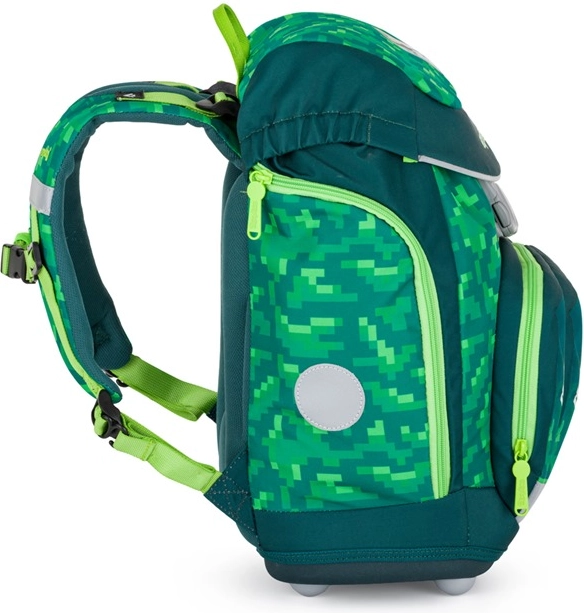 Lagan i prostran školski set za niže i više razrede kombinira ergonomski ruksak s anatomski oblikovanim leđima, vrećicu za tjelesni, jednokatnu pernicu i izmjenjive bedževe. Ruksak nudi obujam 28 l, nisku težinu 950 g, reflektirajuće elemente i čvrsto vodonepropusno dno s nožicama za svakodnevno sigurno nošenje školskog pribora.