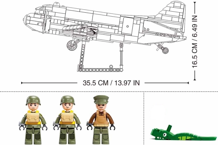Sastavite legendu među vojnim zrakoplovima – Sluban donosi realističan model Douglasa C‑47 u maslinastozelenoj izvedbi. Nudi otvarajuće dijelove, okretne propelere, izvlačivo podvozje i bogato pribor s minifigurkama, zahvaljujući kojem će djeca i kolekcionari uživati u akcijskim pričama i izložbenim detaljima.