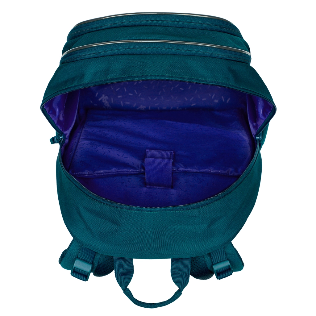 Tri odvojena pretinca, unutarnji organizator i podstavljena pregrada sa sigurnosnim remenom sigurno će smjestiti udžbenike, bilježnice te prijenosno računalo ili tablet.
