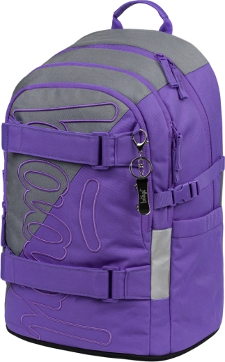 Tri zasebno zatvoriva pretinca osiguravaju pregledno spremanje školskog pribora. Unutarnji organizator i podstavljeni džep za 15″ prijenosnik ili tablet štite elektroniku, a bočni džepovi primaju bocu za piće. Prednji kompresijski/priključni remeni sigurno pričvršćuju skateboard ili majicu.