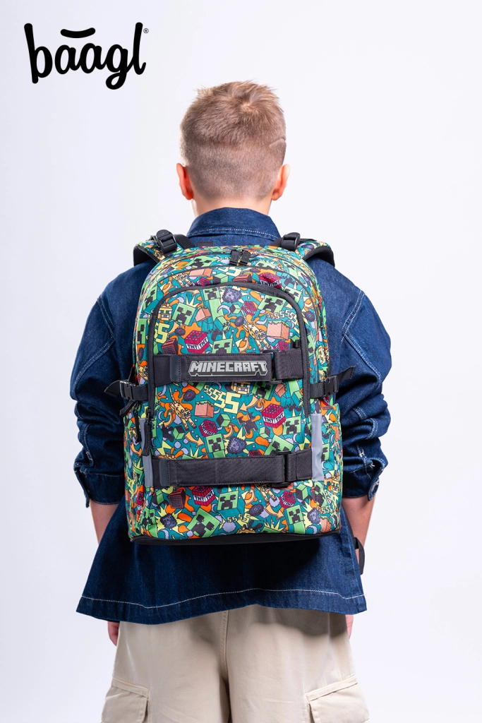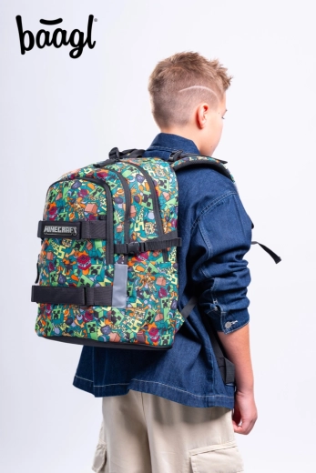 Tražite školsku torbu koja podnosi svakodnevno opterećenje, ostaje udobna na leđima i ističe se upečatljivim dizajnom? BAAGL Skate MINECRAFT Chaos ispunjava očekivanja djece i roditelja. Zahvaljujući anatomski oblikovanim leđima s lumbalnim pojačanjem i u potpunosti podesivim kompresijskim remenima ruksak se savršeno prilagođava tijelu i udobno stoji cijeli dan.