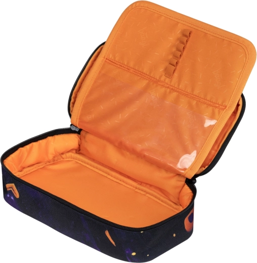 Kompaktna pernica na patentni zatvarač s prostranim pretincem, unutarnjim džepom i prozorčićem za raspored. Izdržljive vučice i markirani YKK patentni zatvarači. Isporučuje se bez punjenja.