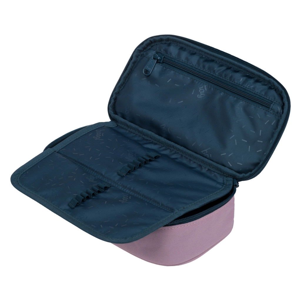 Stilna i izdržljiva školska pernica Baagl Rose s certifikatom GRS nudi prostrani glavni pretinac, dvostruki preklopni list i praktičnu organizaciju za savršen pregled. Zahvaljujući markiranim YKK patentnim zatvaračima i čvrstim potezačima pernica je maksimalno pouzdana, izrađena od recikliranog materijala koji je obazriv prema prirodi. Isporučuje se bez punjenja.